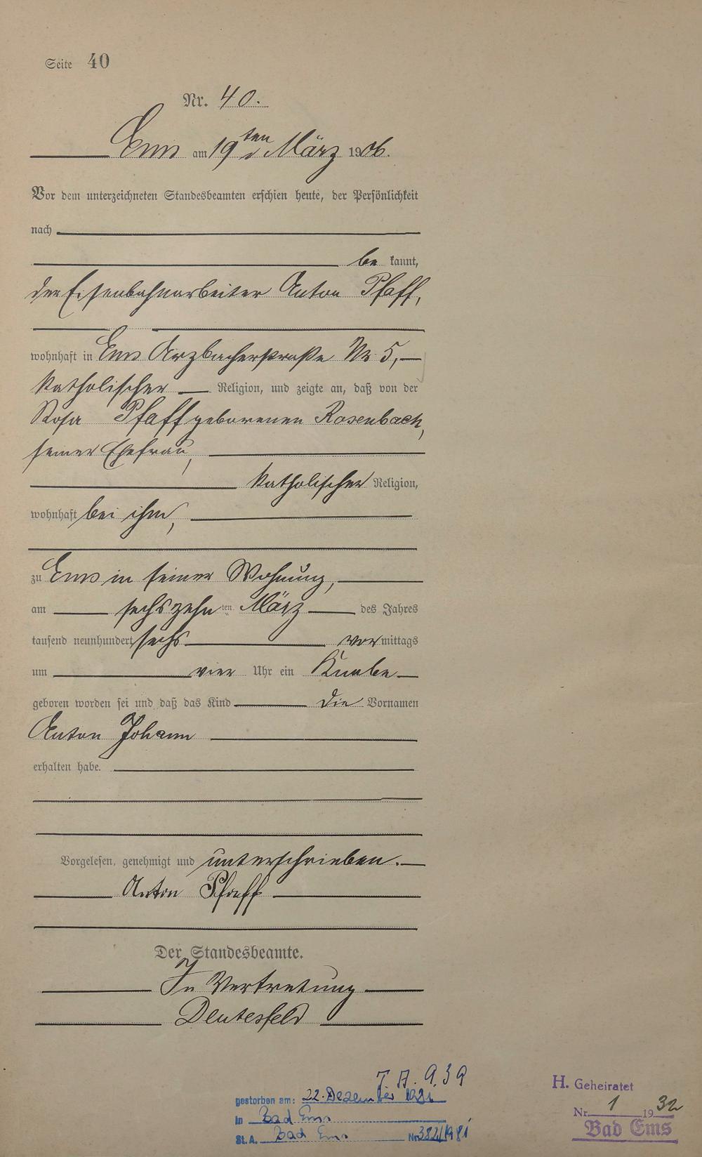 Geburtsregister 1906