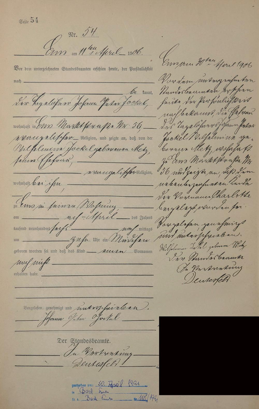 Geburtsregister 1906