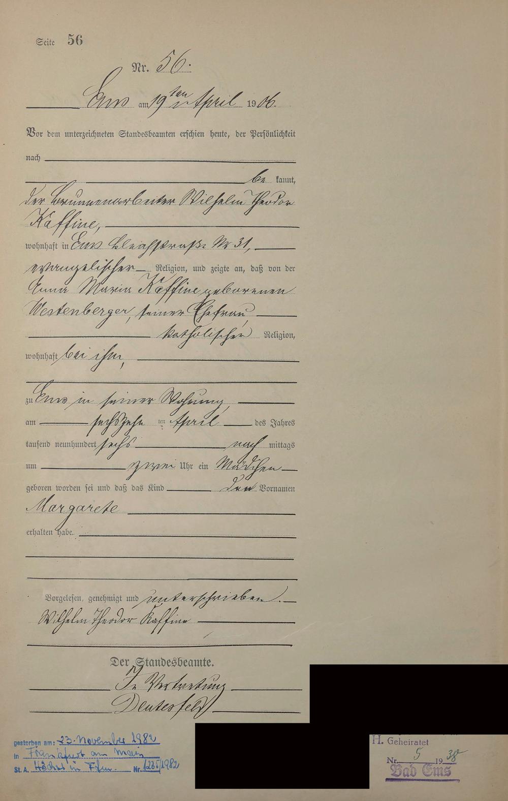Geburtsregister 1906