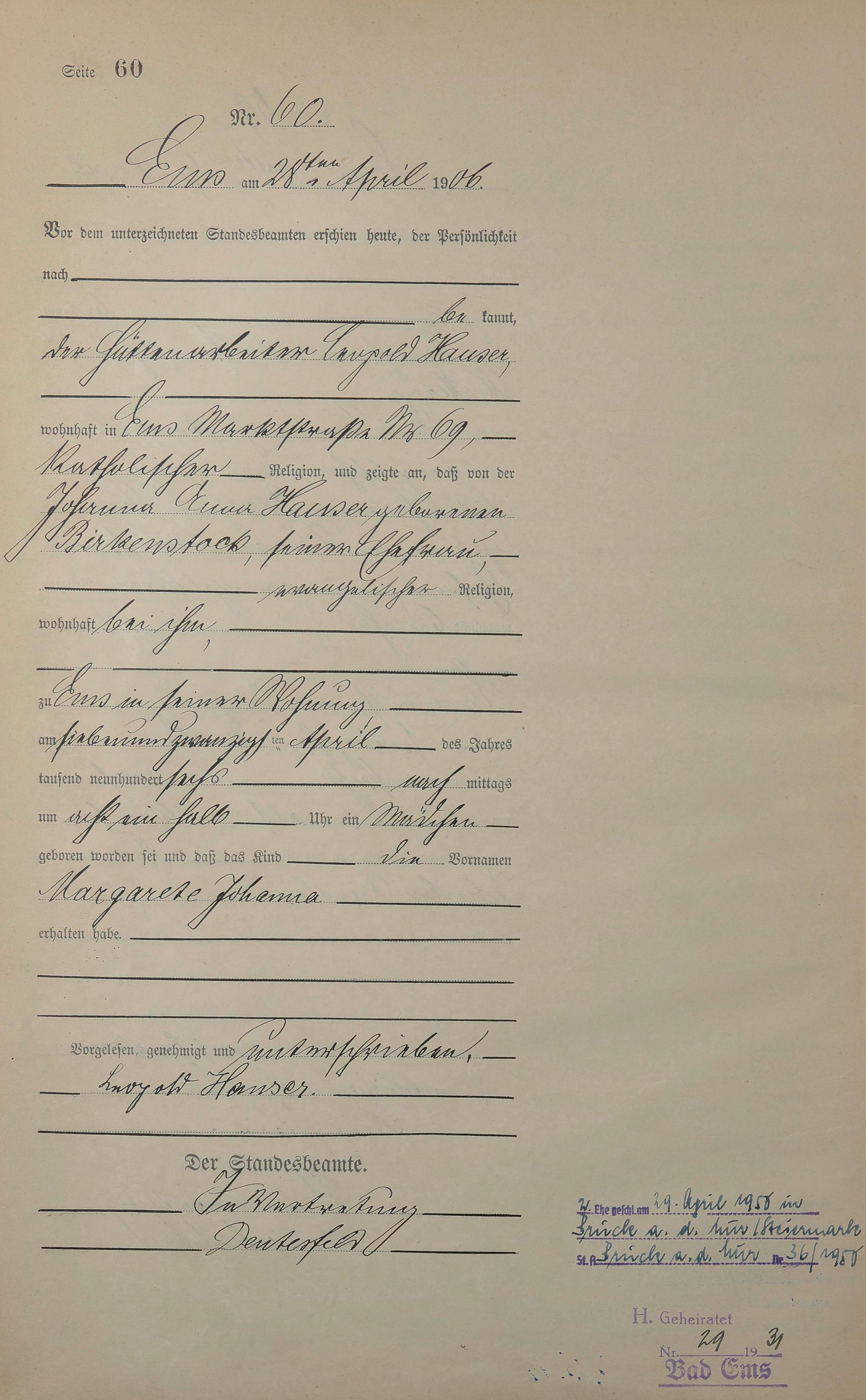 Geburtsregister 1906