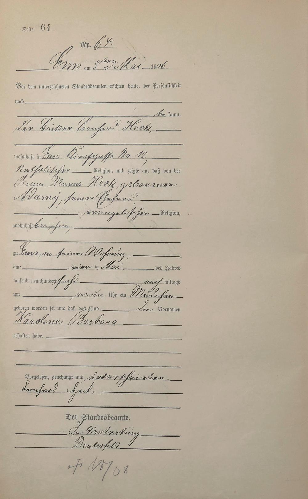 Geburtsregister 1906