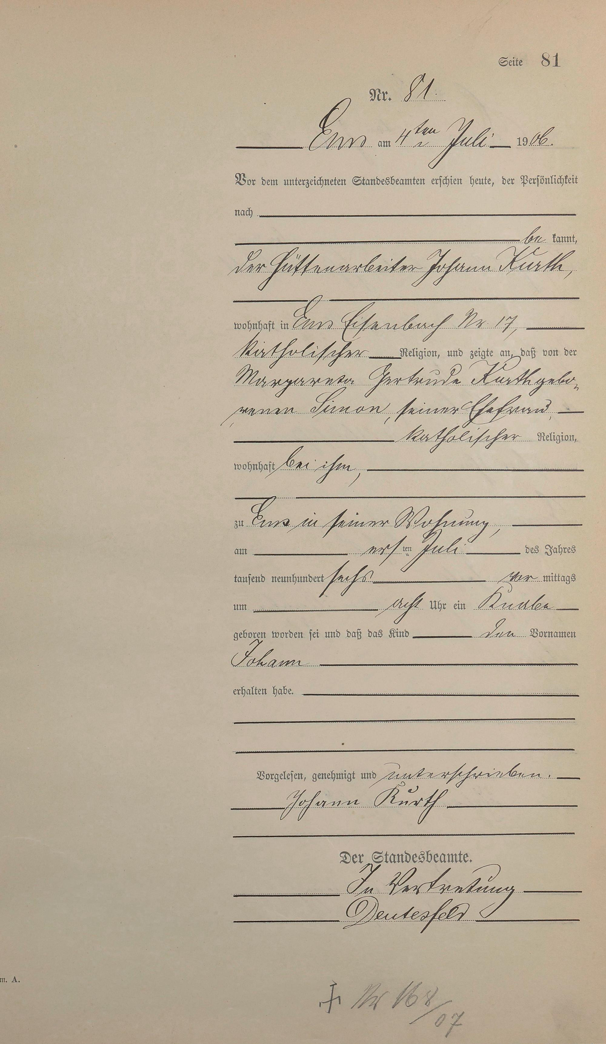 Geburtsregister 1906