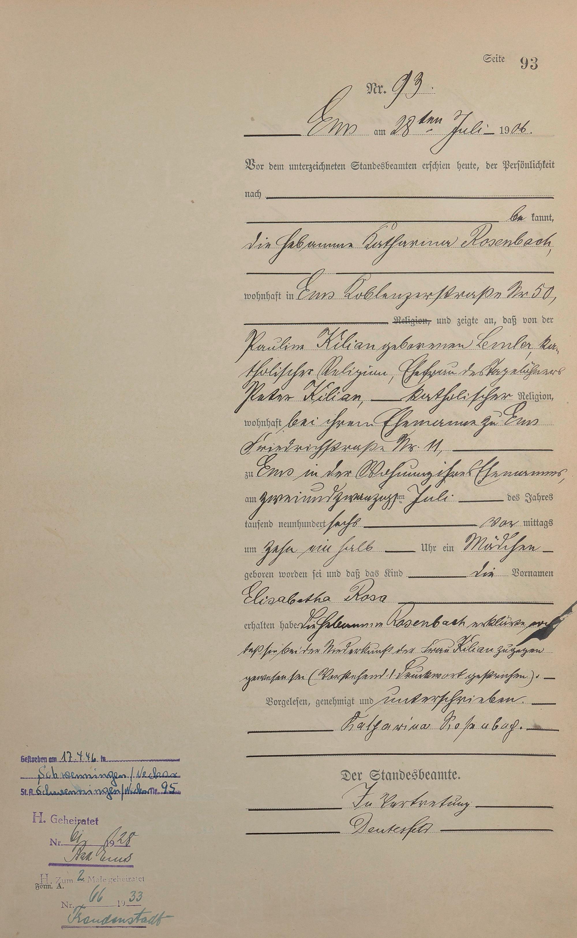Geburtsregister 1906