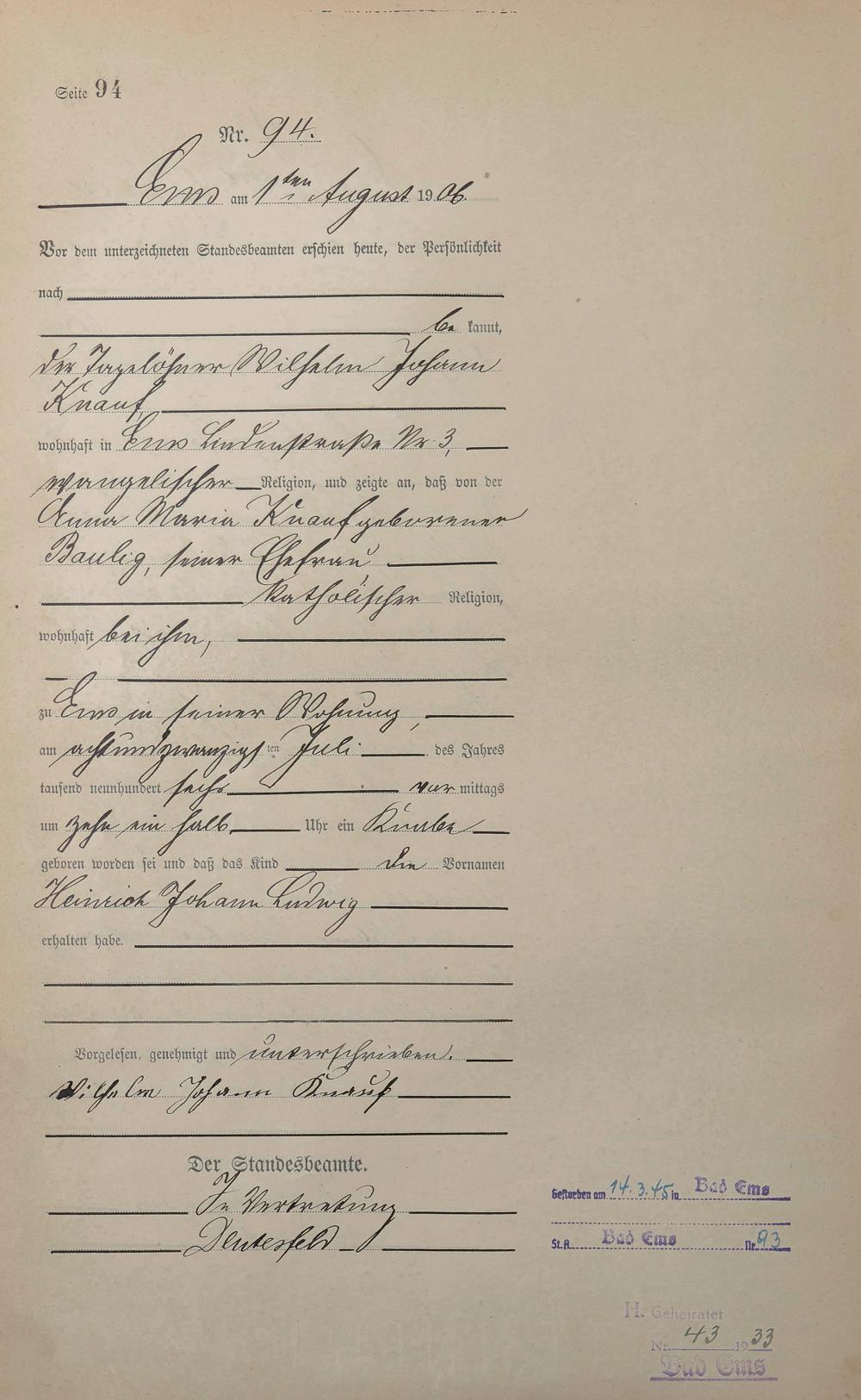 Geburtsregister 1906
