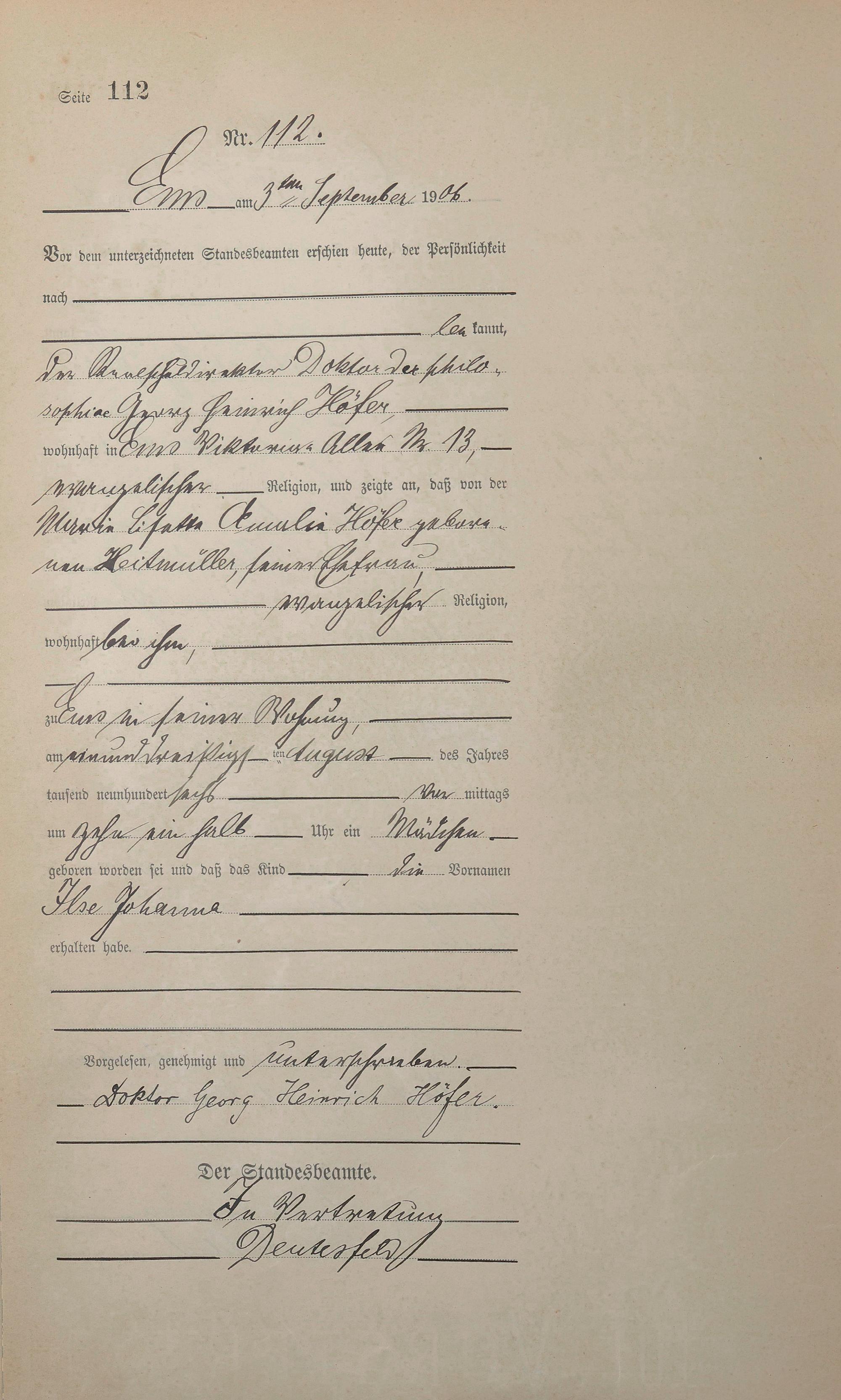 Geburtsregister 1906