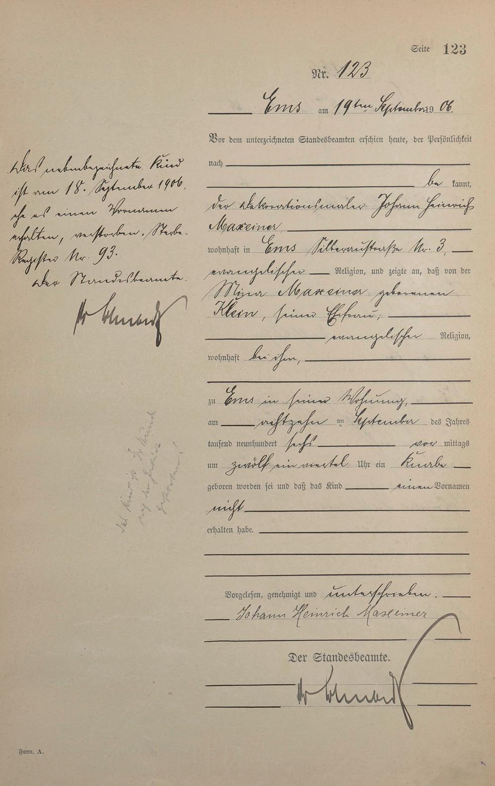 Geburtsregister 1906