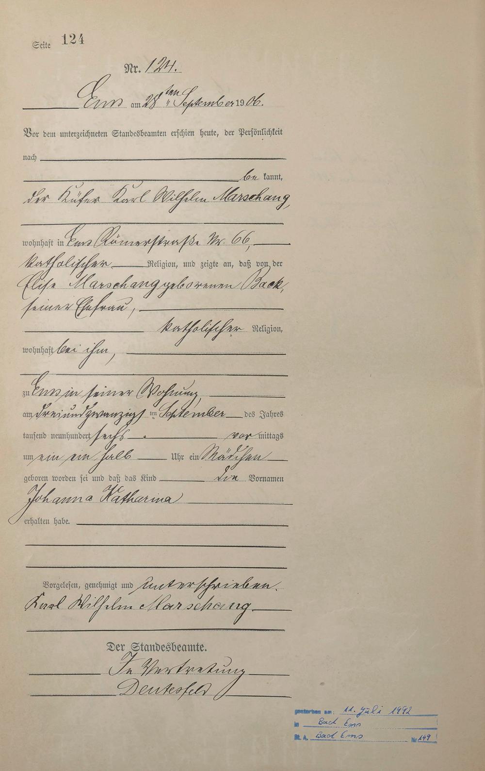 Geburtsregister 1906