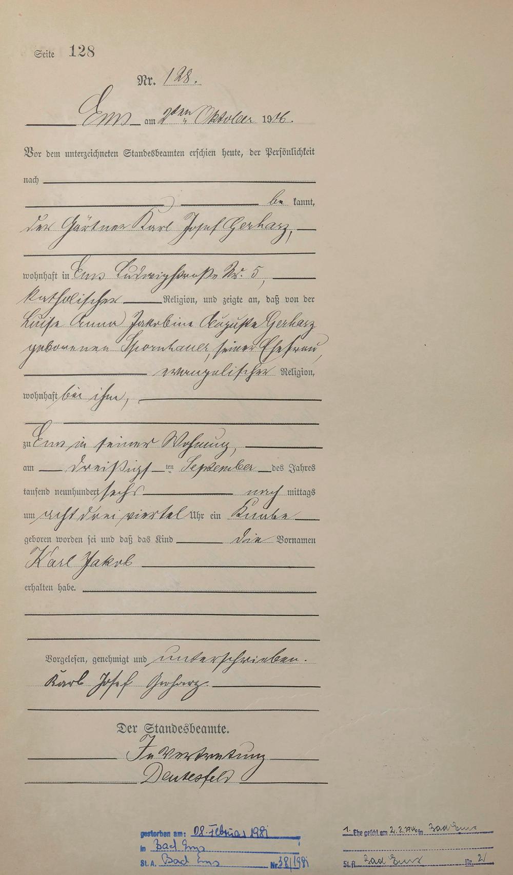 Geburtsregister 1906