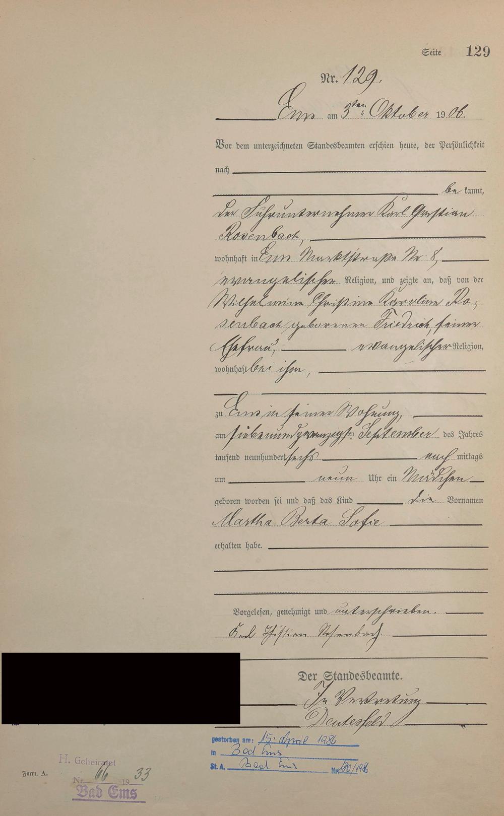 Geburtsregister 1906