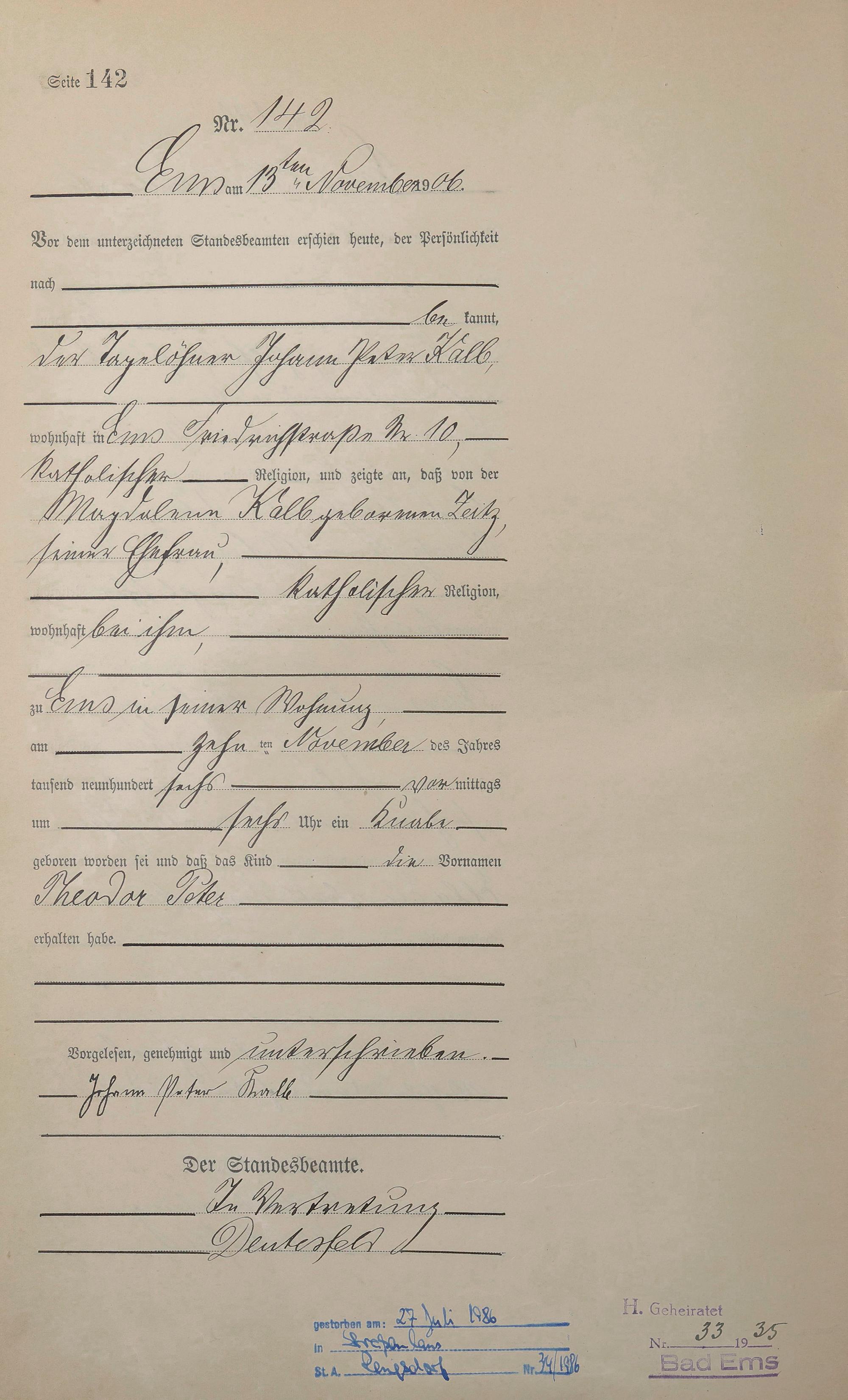 Geburtsregister 1906