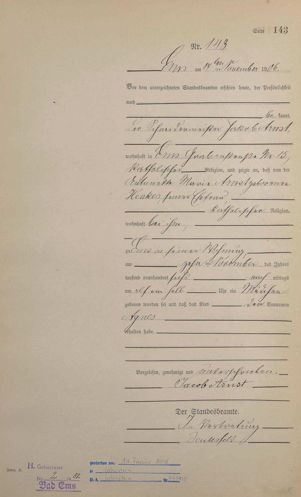 Geburtsregister 1906