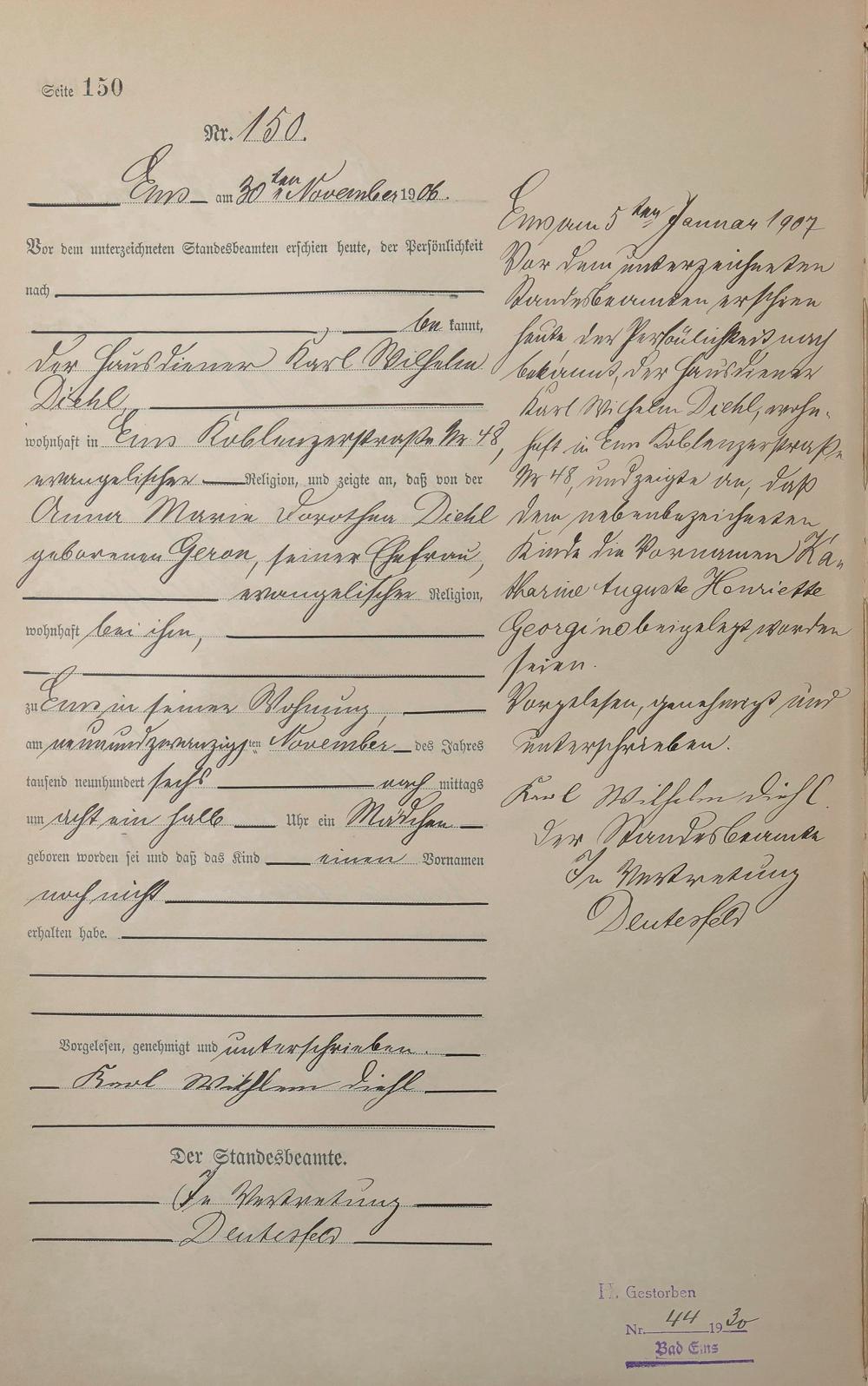 Geburtsregister 1906