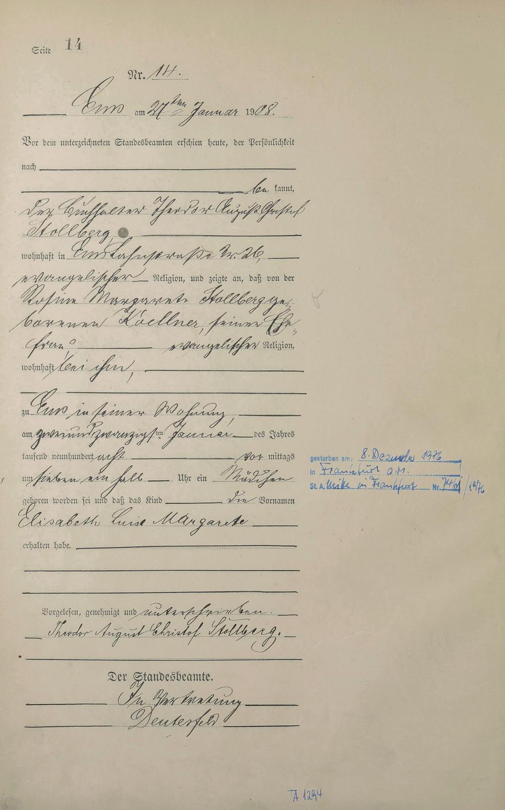 Geburtsregister 1908