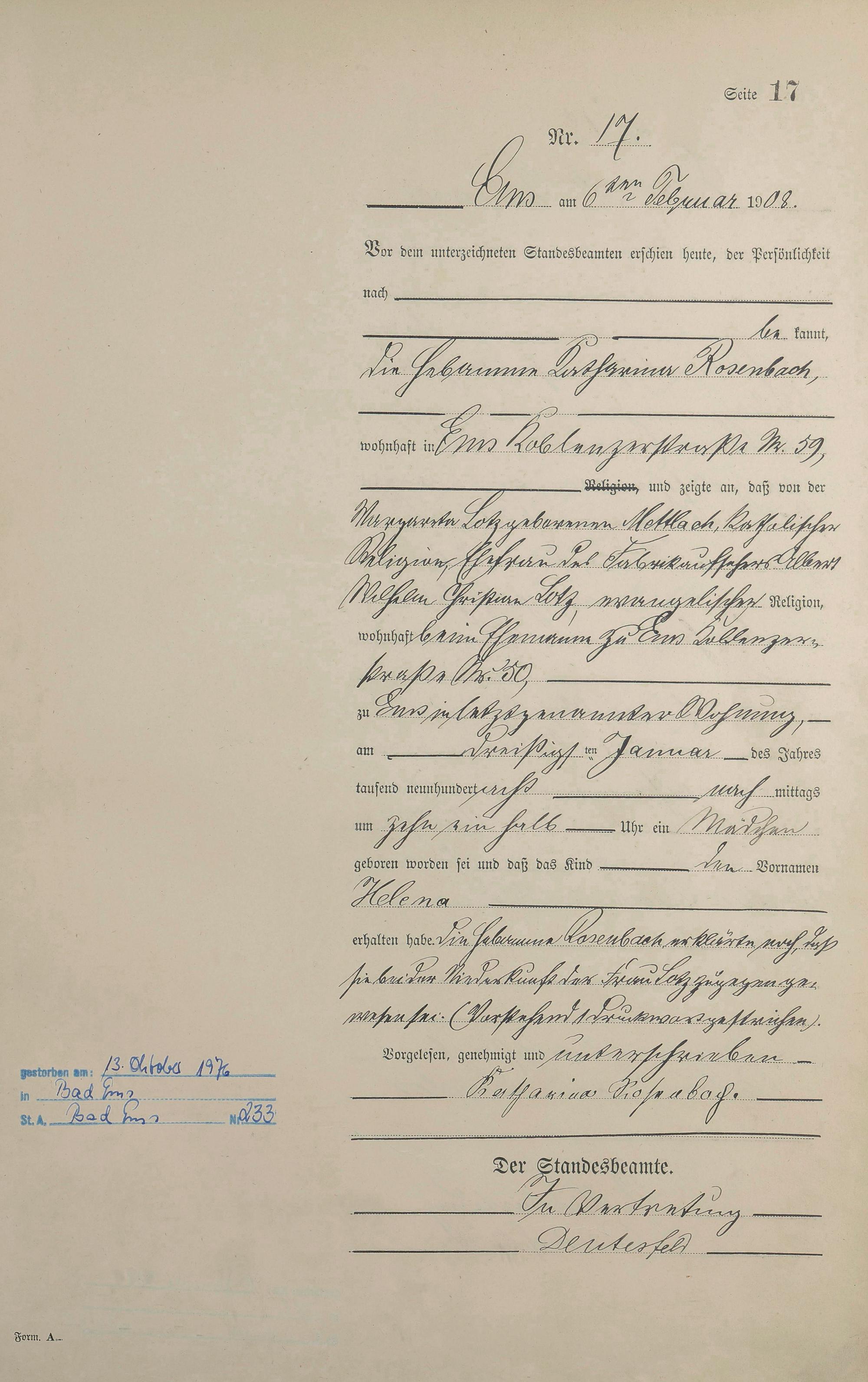 Geburtsregister 1908