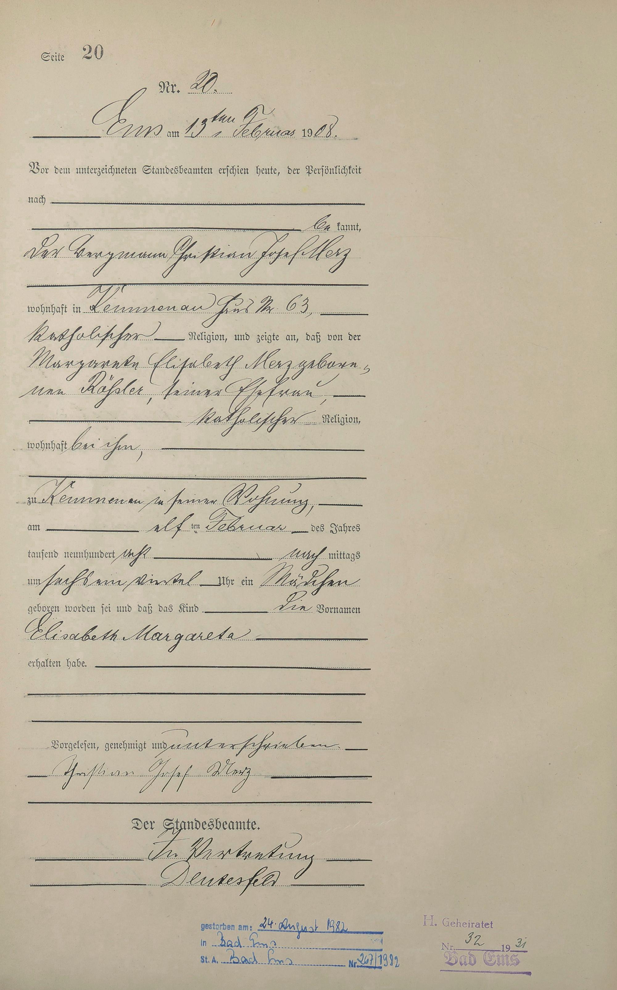 Geburtsregister 1908
