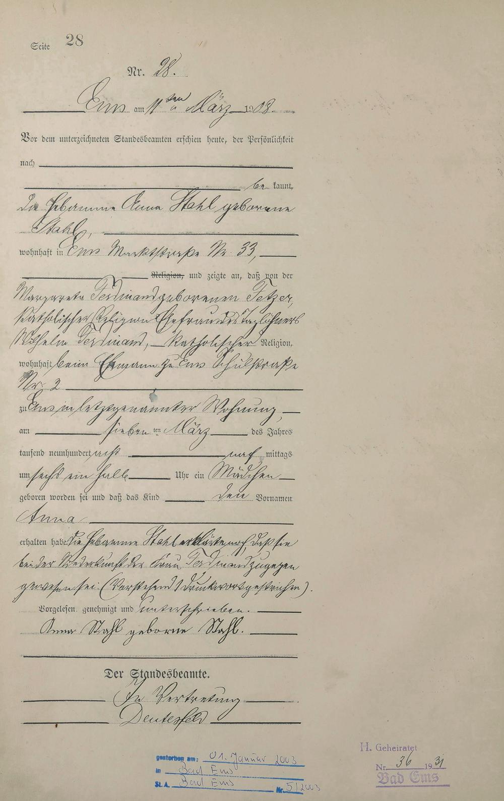 Geburtsregister 1908