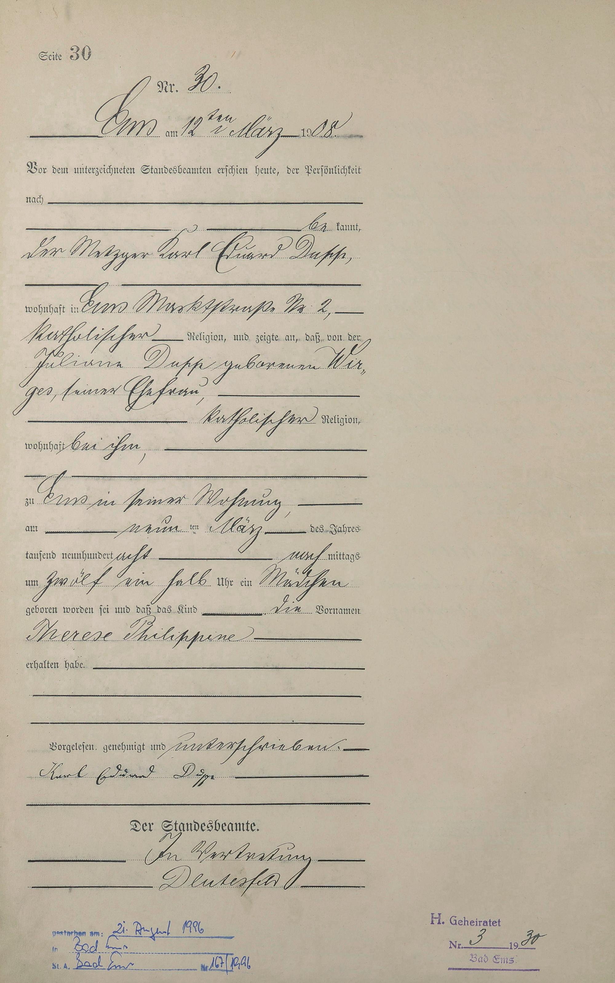 Geburtsregister 1908