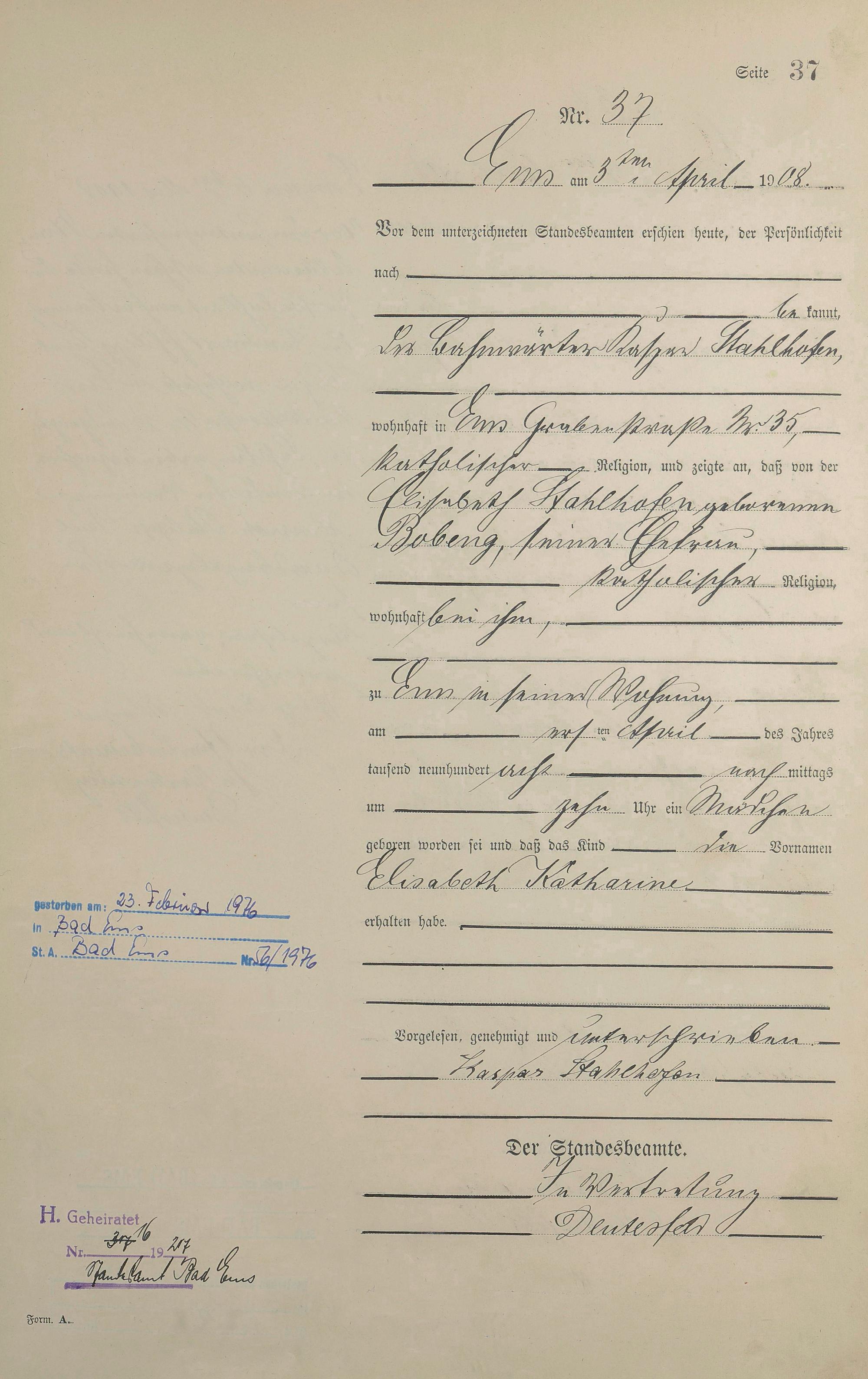 Geburtsregister 1908
