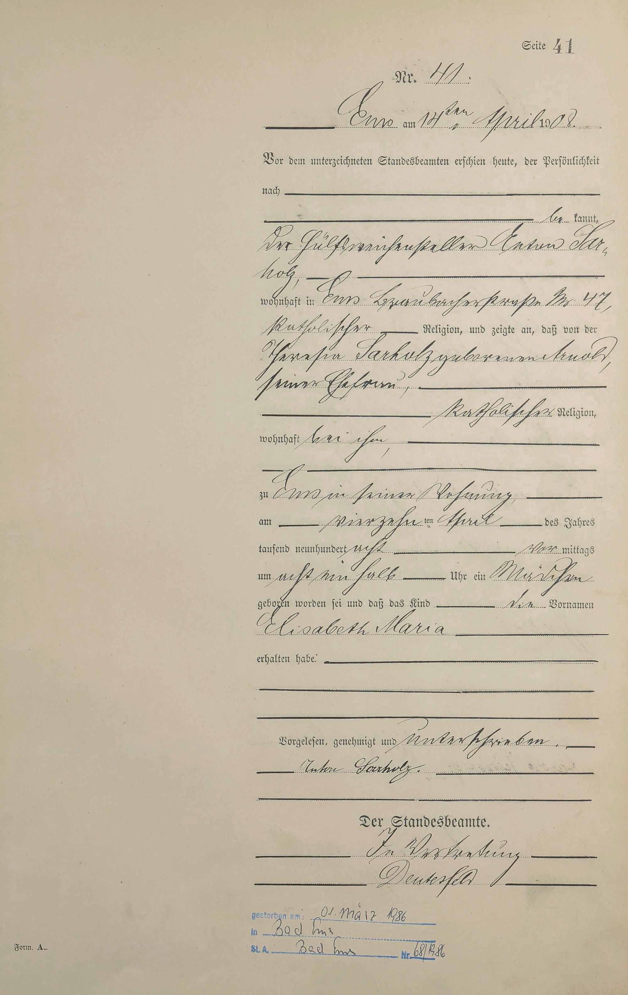 Geburtsregister 1908