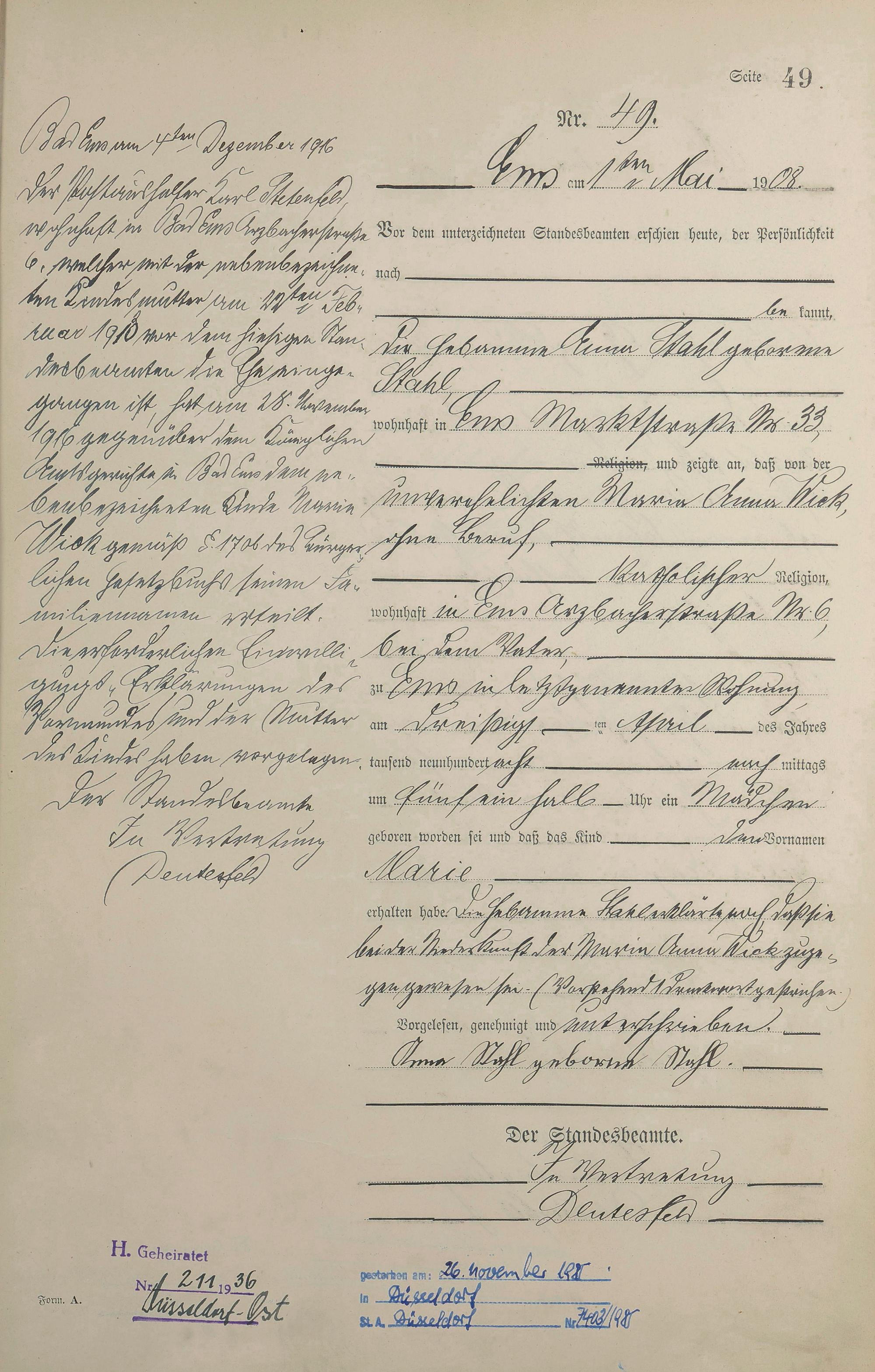 Geburtsregister 1908