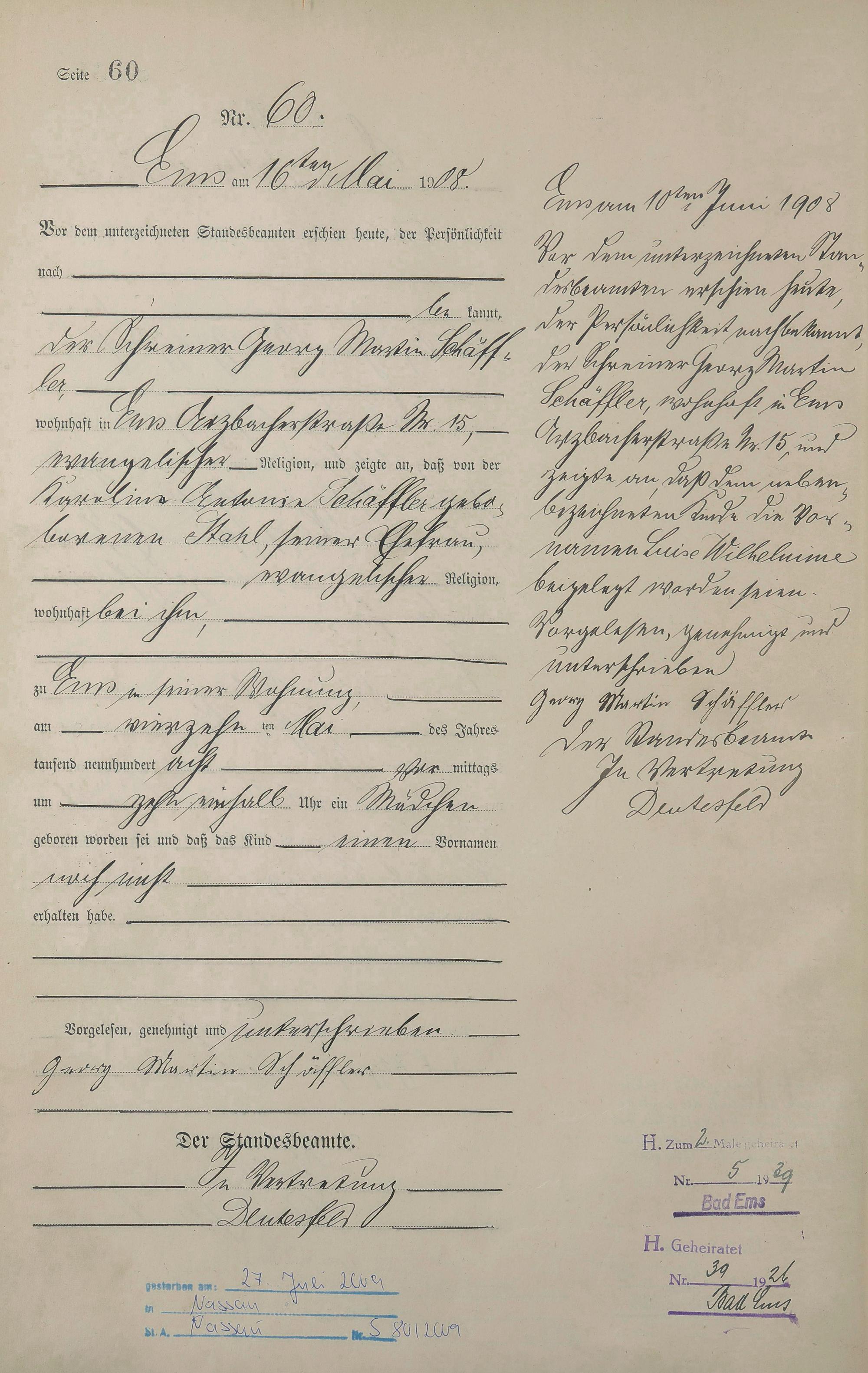 Geburtsregister 1908