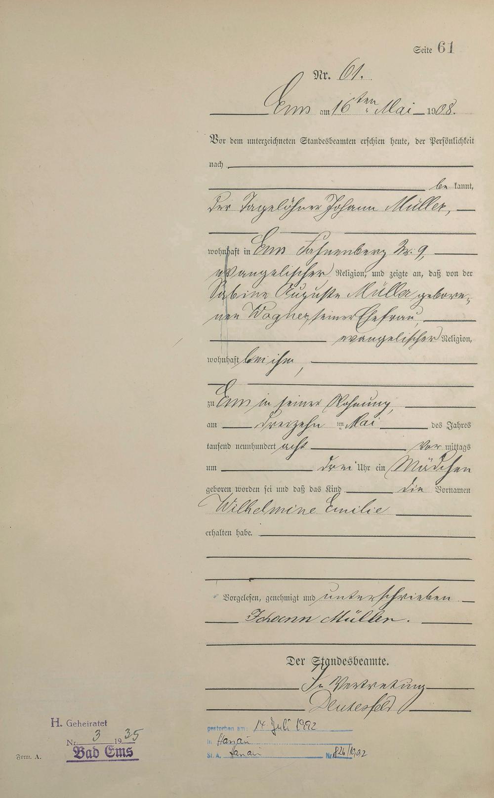 Geburtsregister 1908