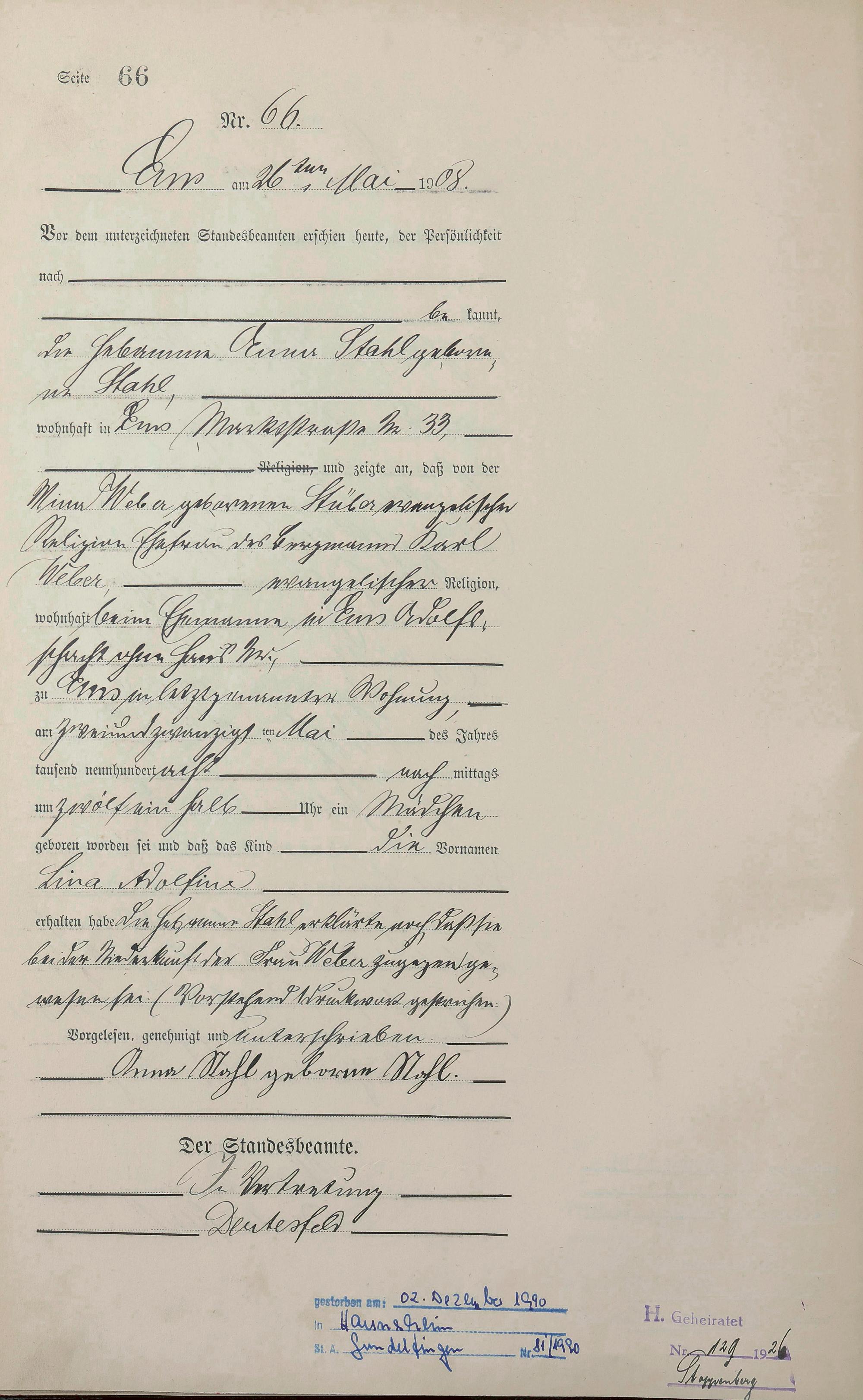 Geburtsregister 1908