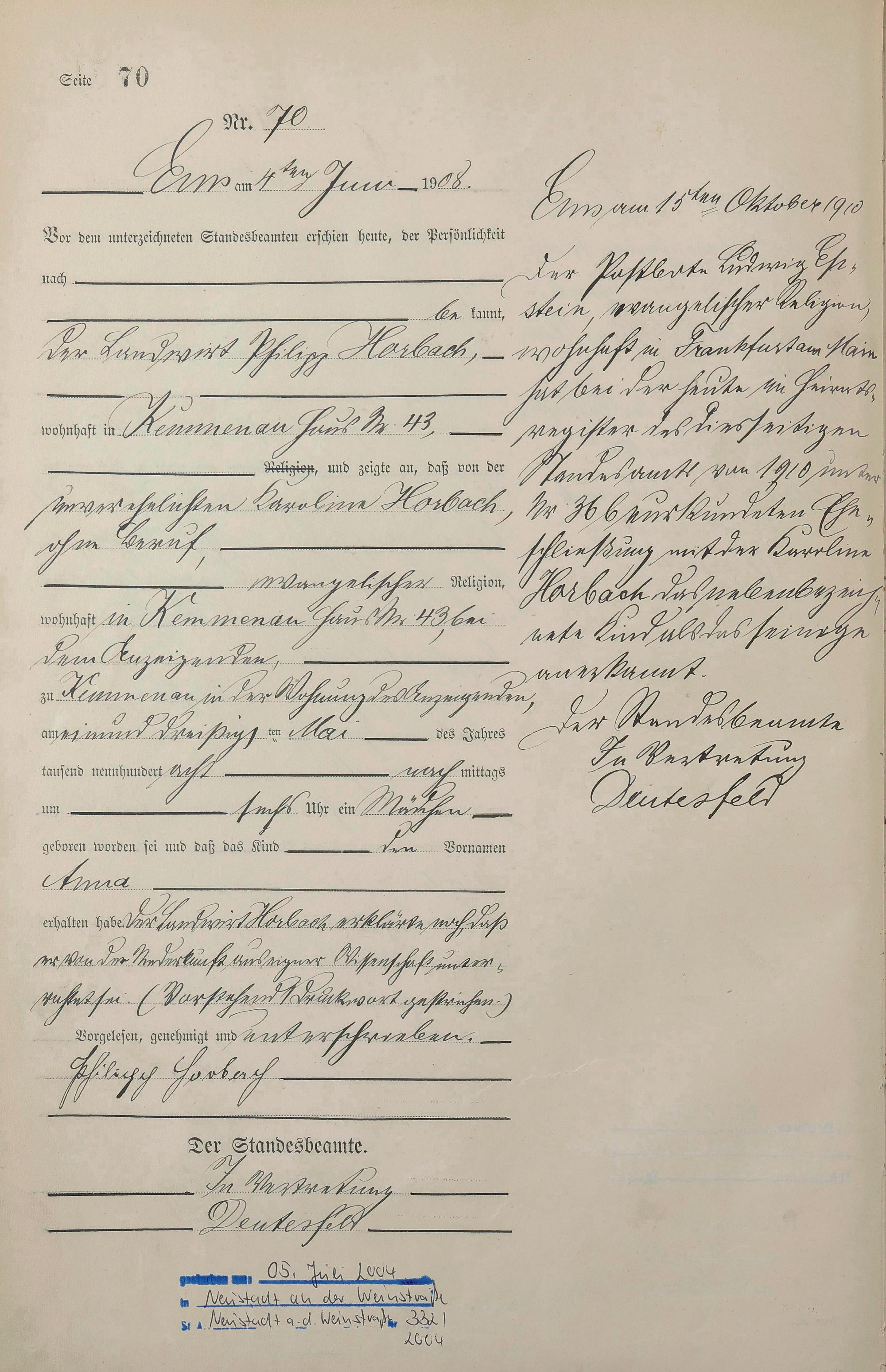 Geburtsregister 1908