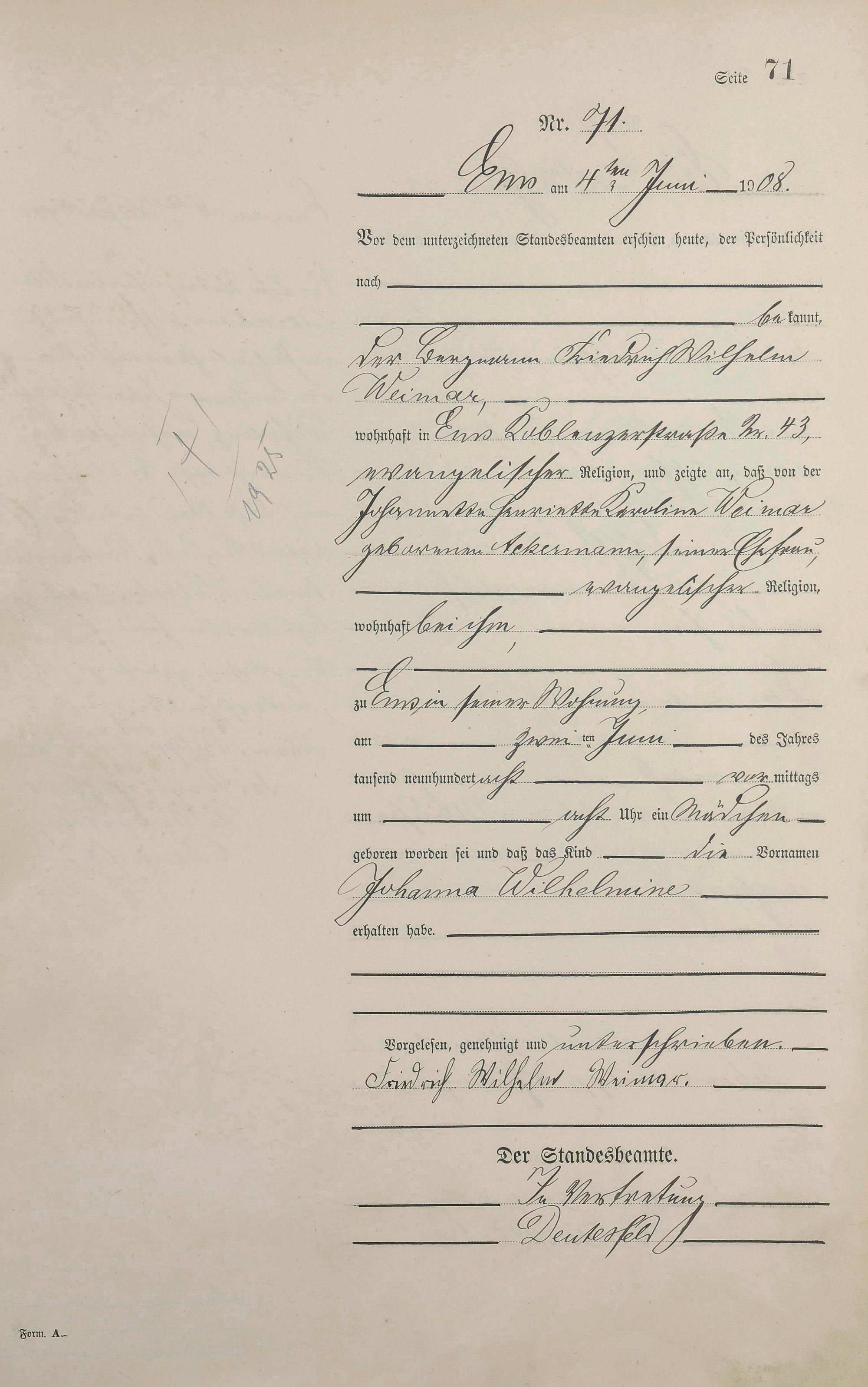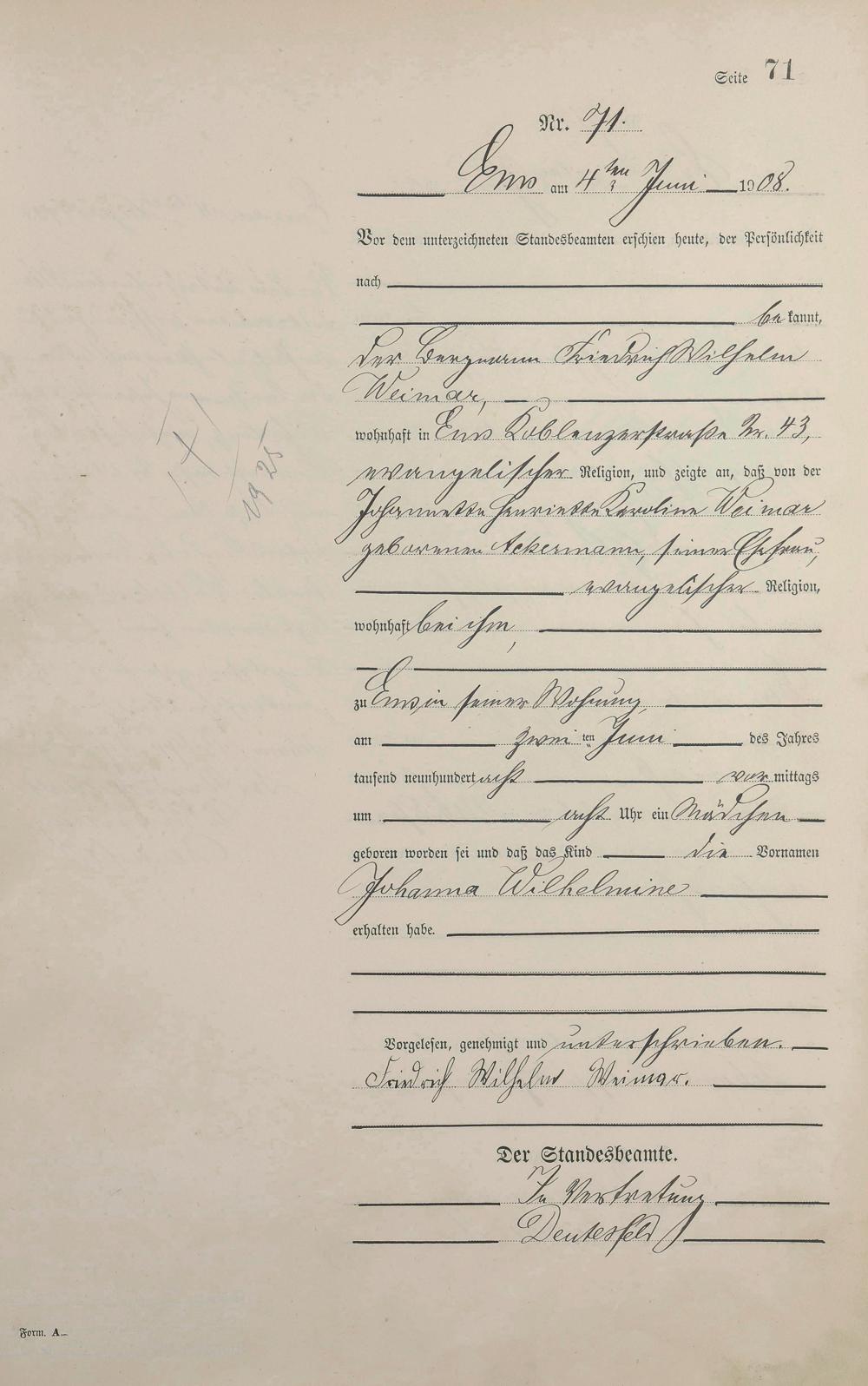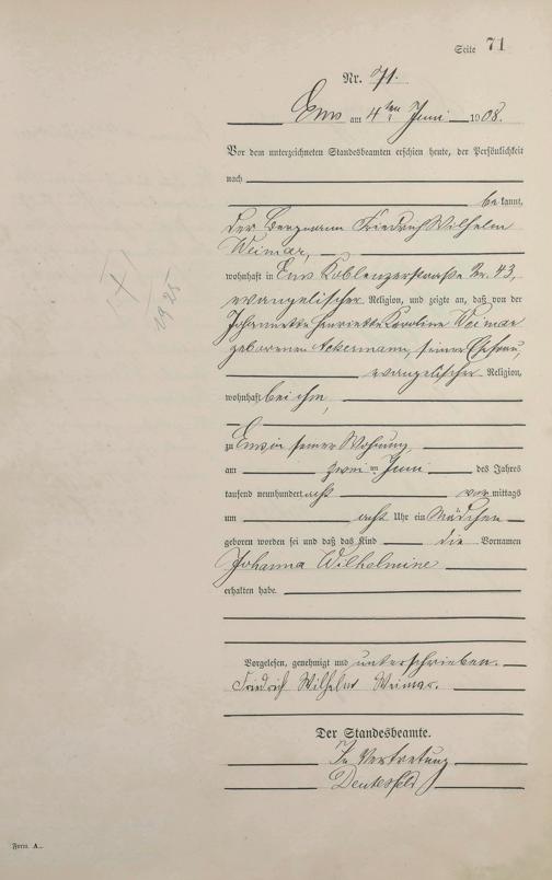 Geburtsregister 1908