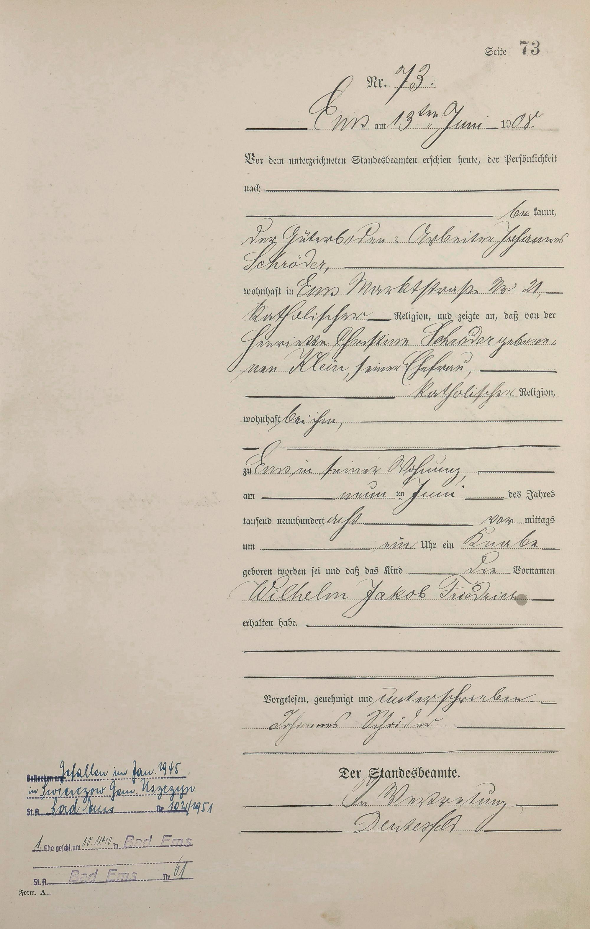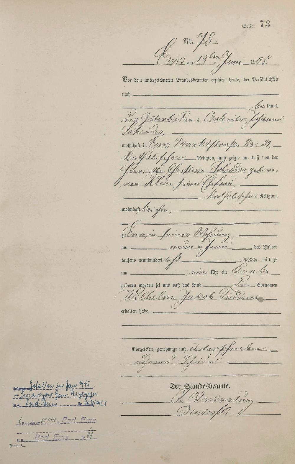 Geburtsregister 1908