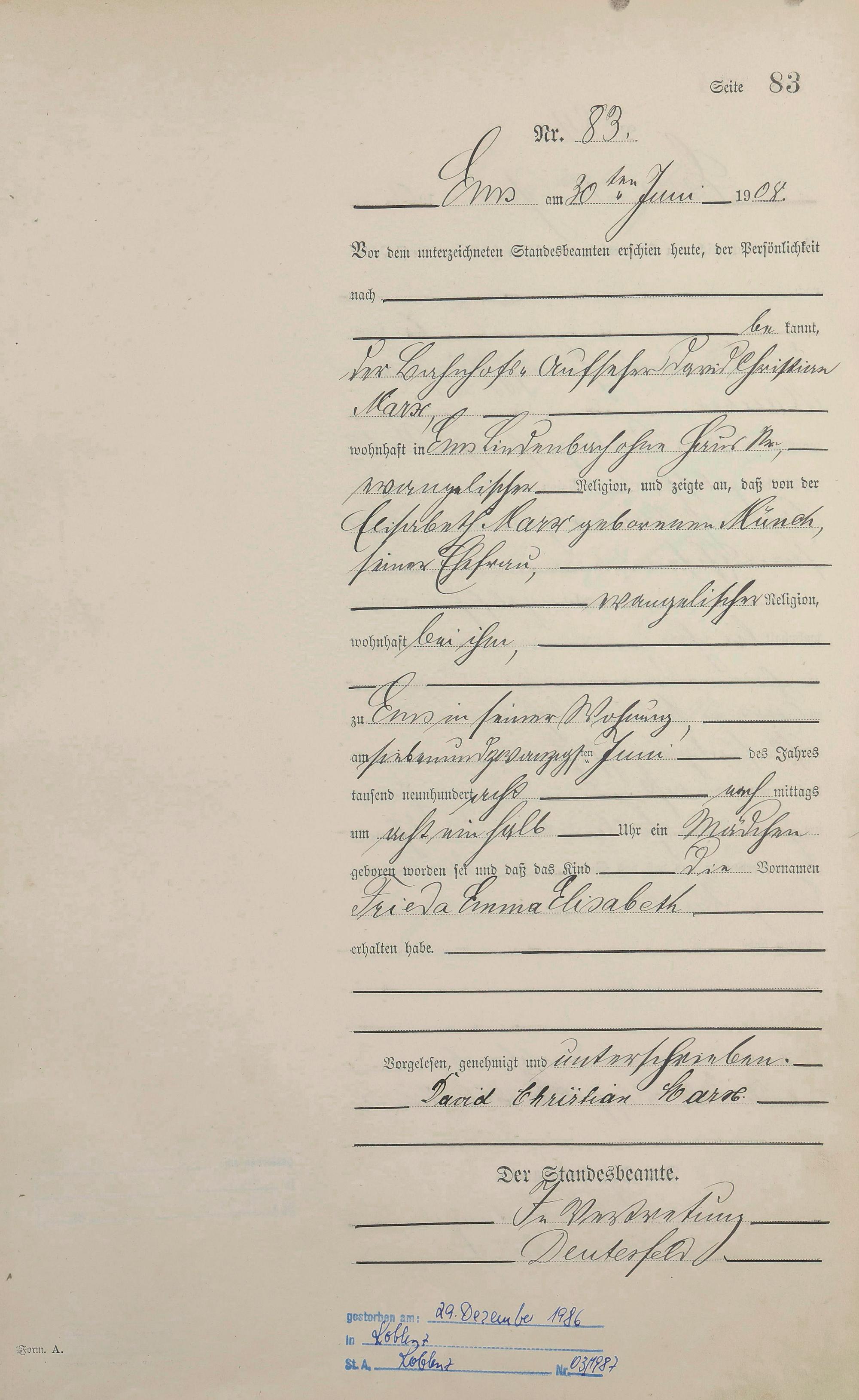Geburtsregister 1908