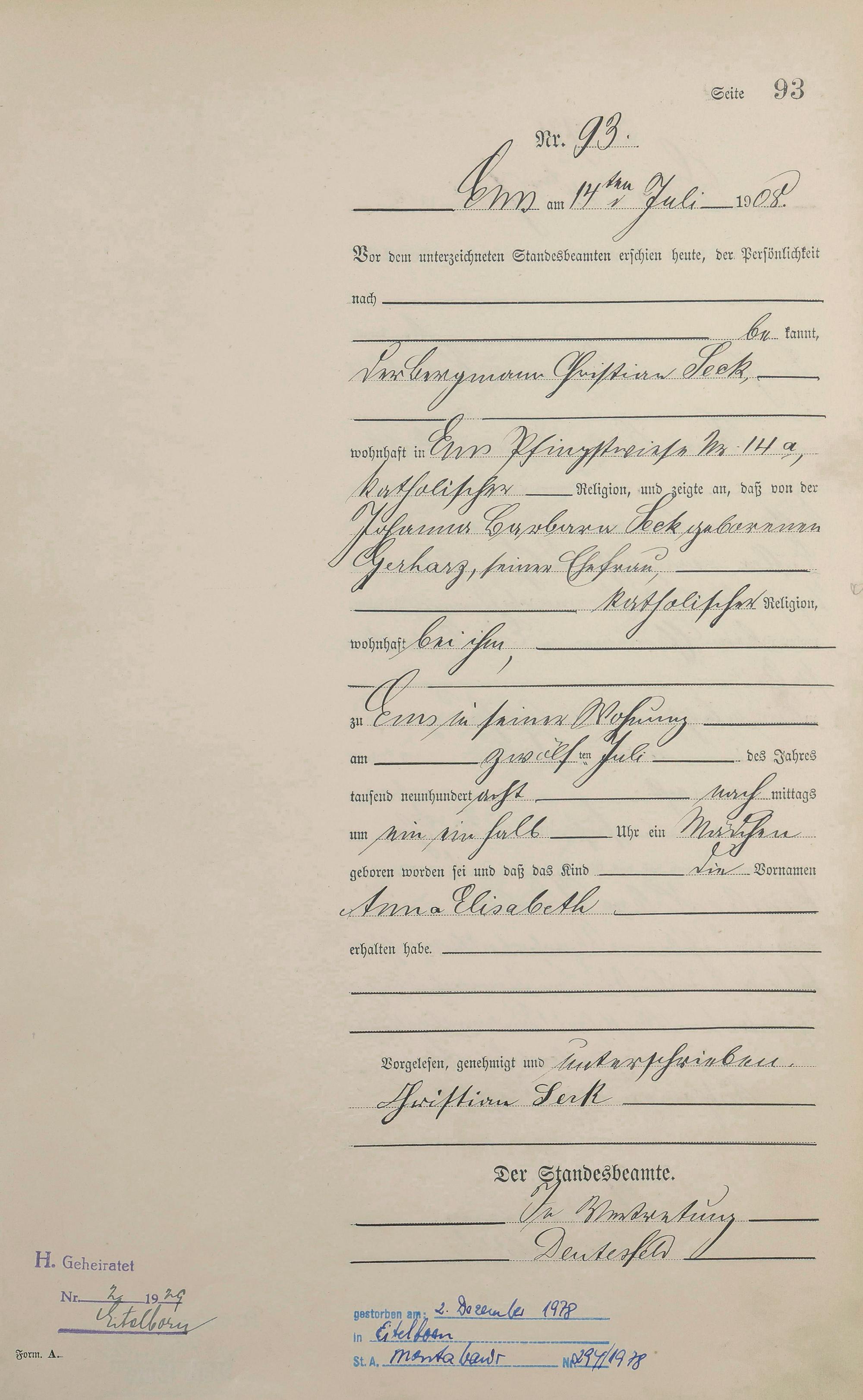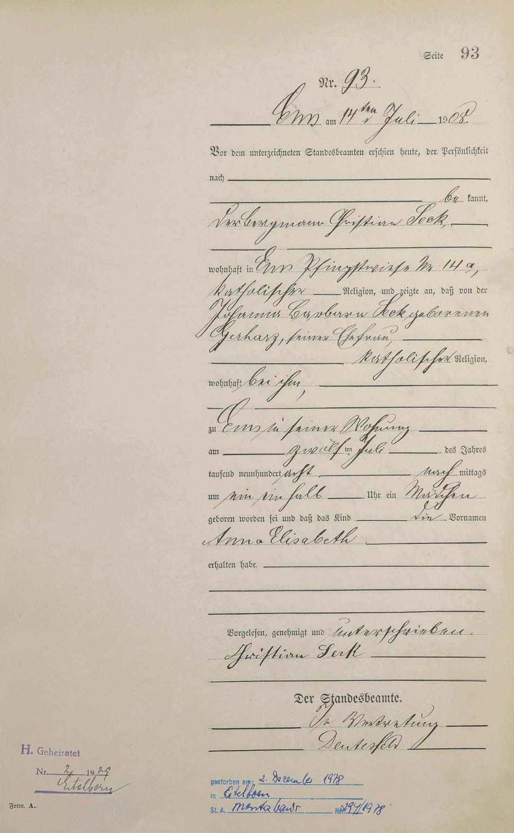 Geburtsregister 1908
