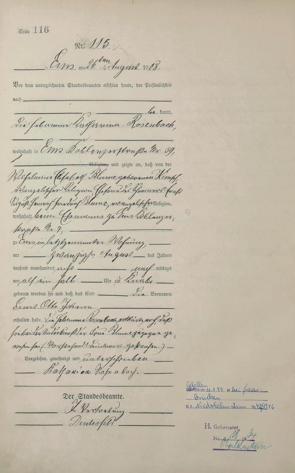 Geburtsregister 1908