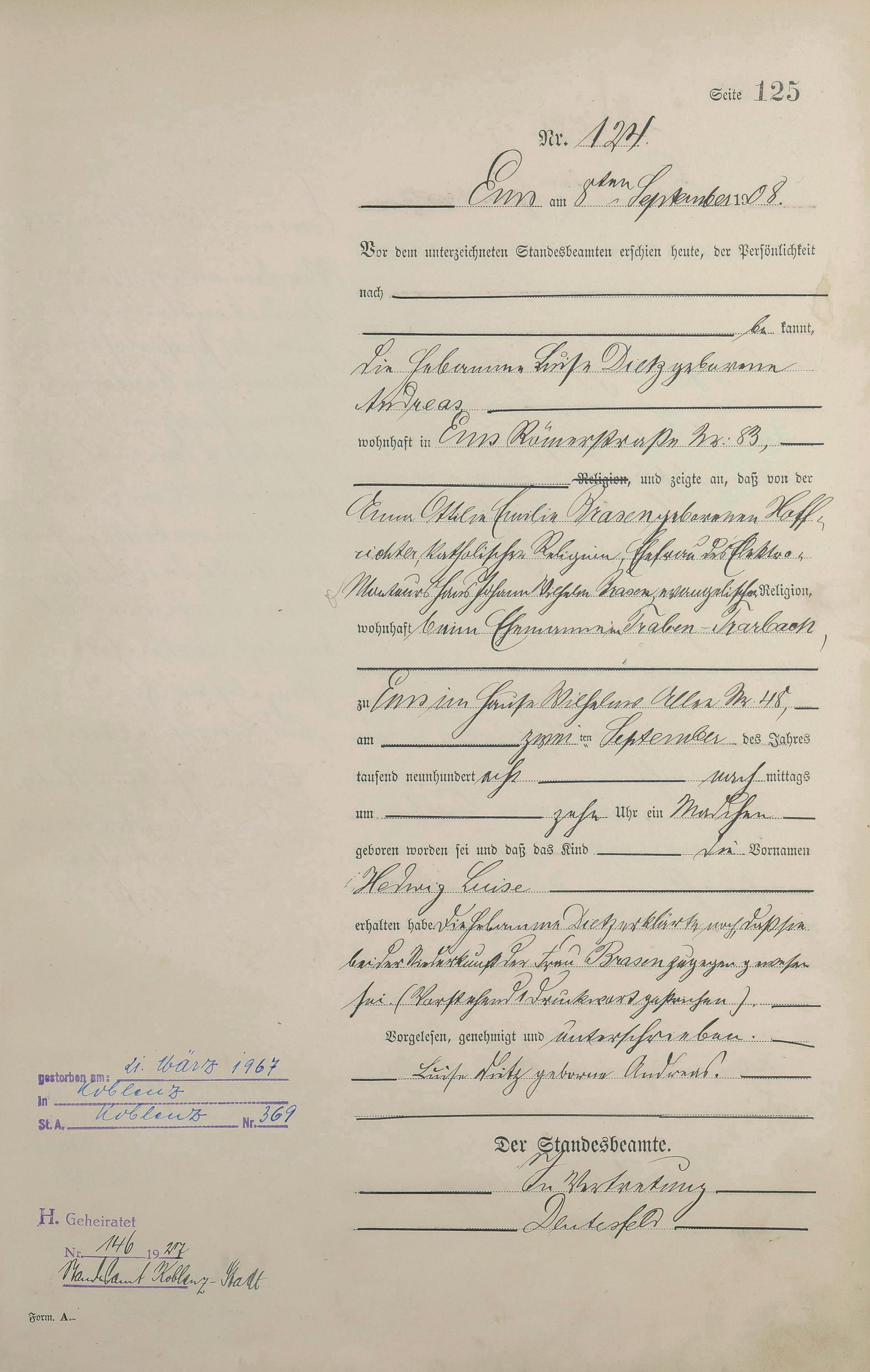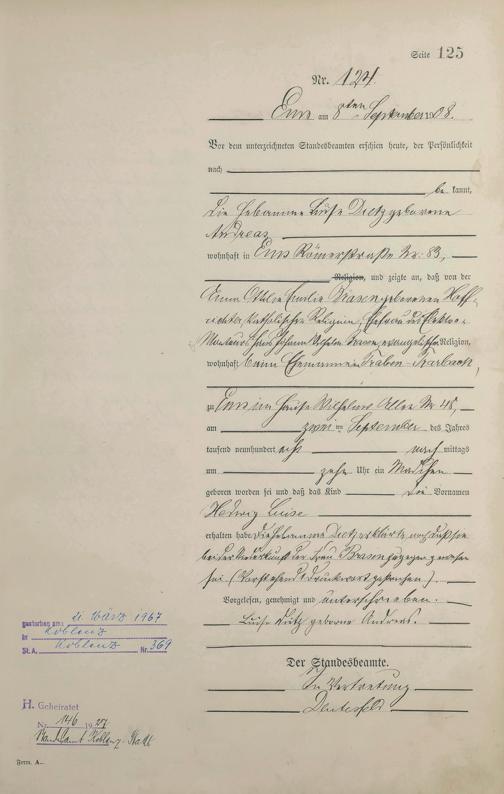 1284: Geburtsregister 1908