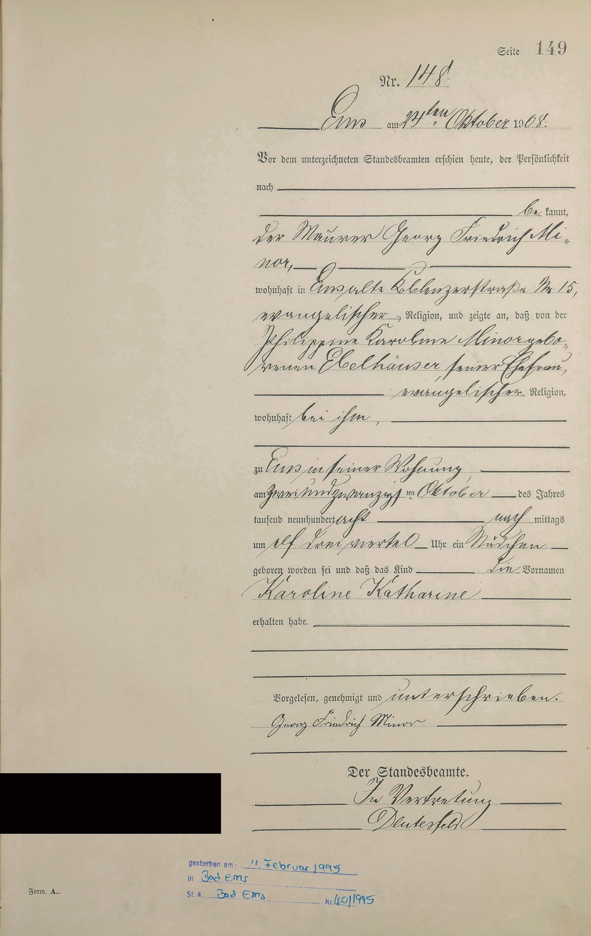 Geburtsregister 1908