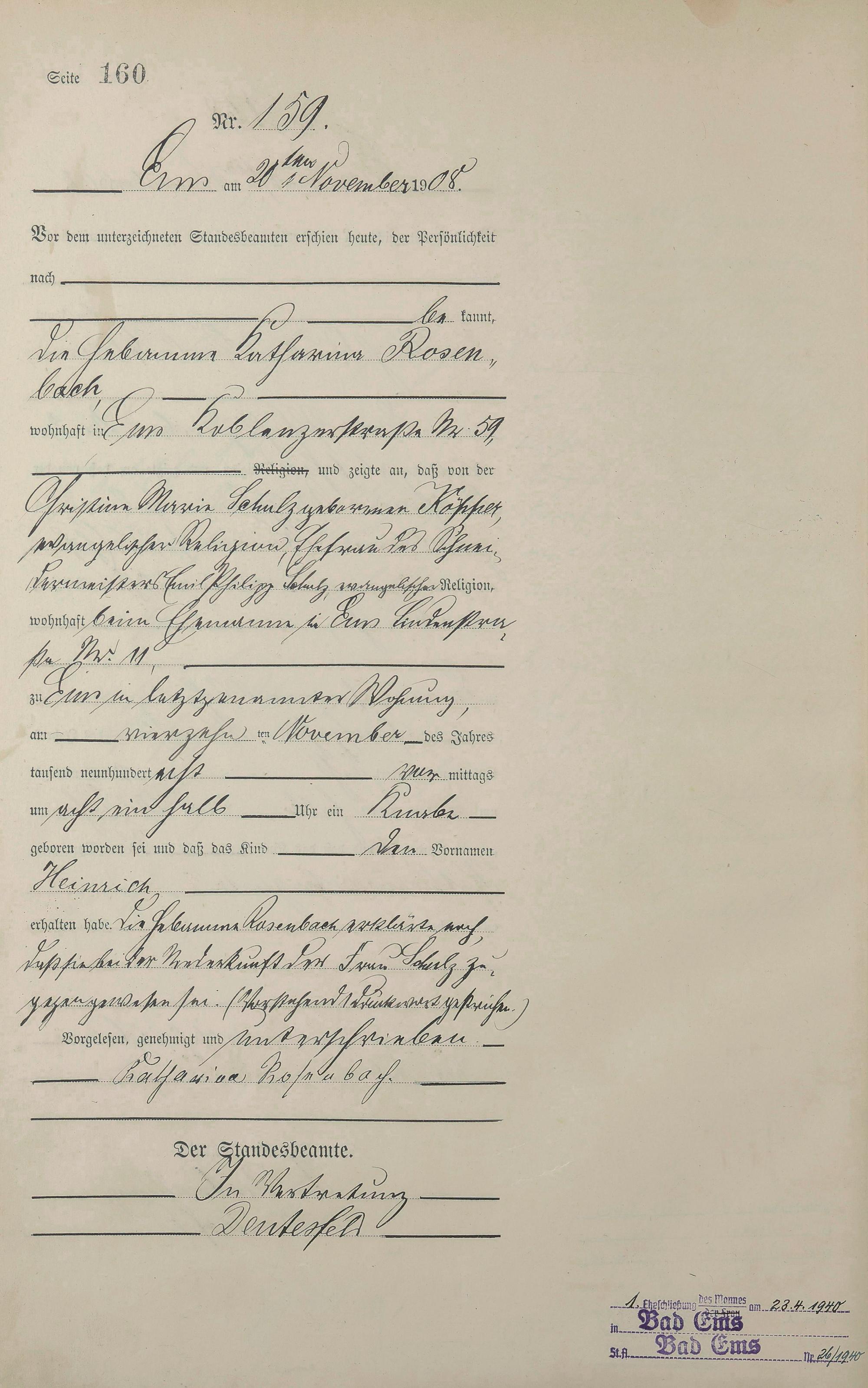 Geburtsregister 1908
