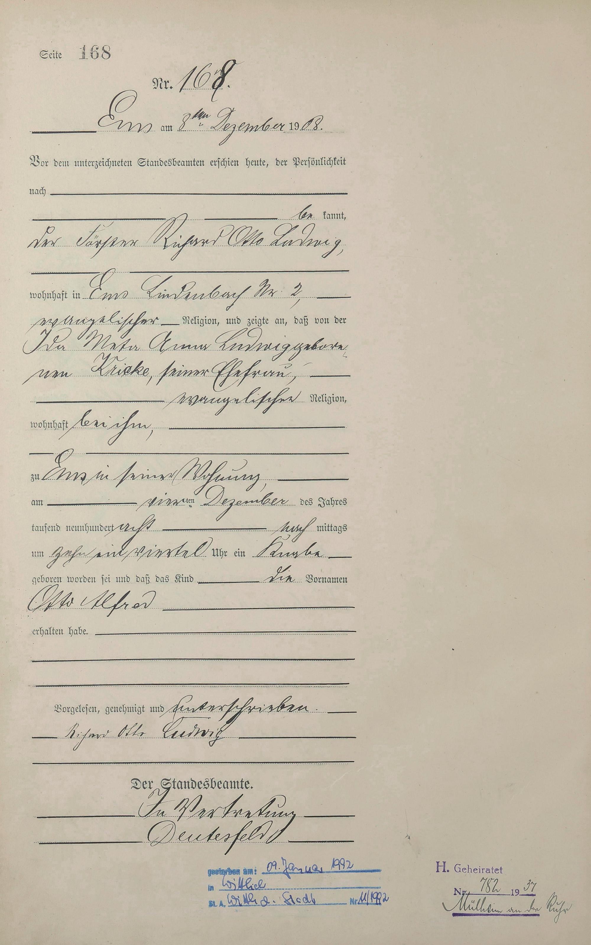 Geburtsregister 1908