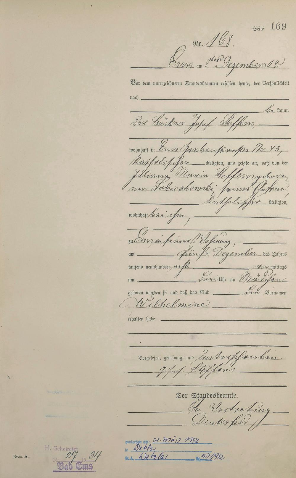 Geburtsregister 1908