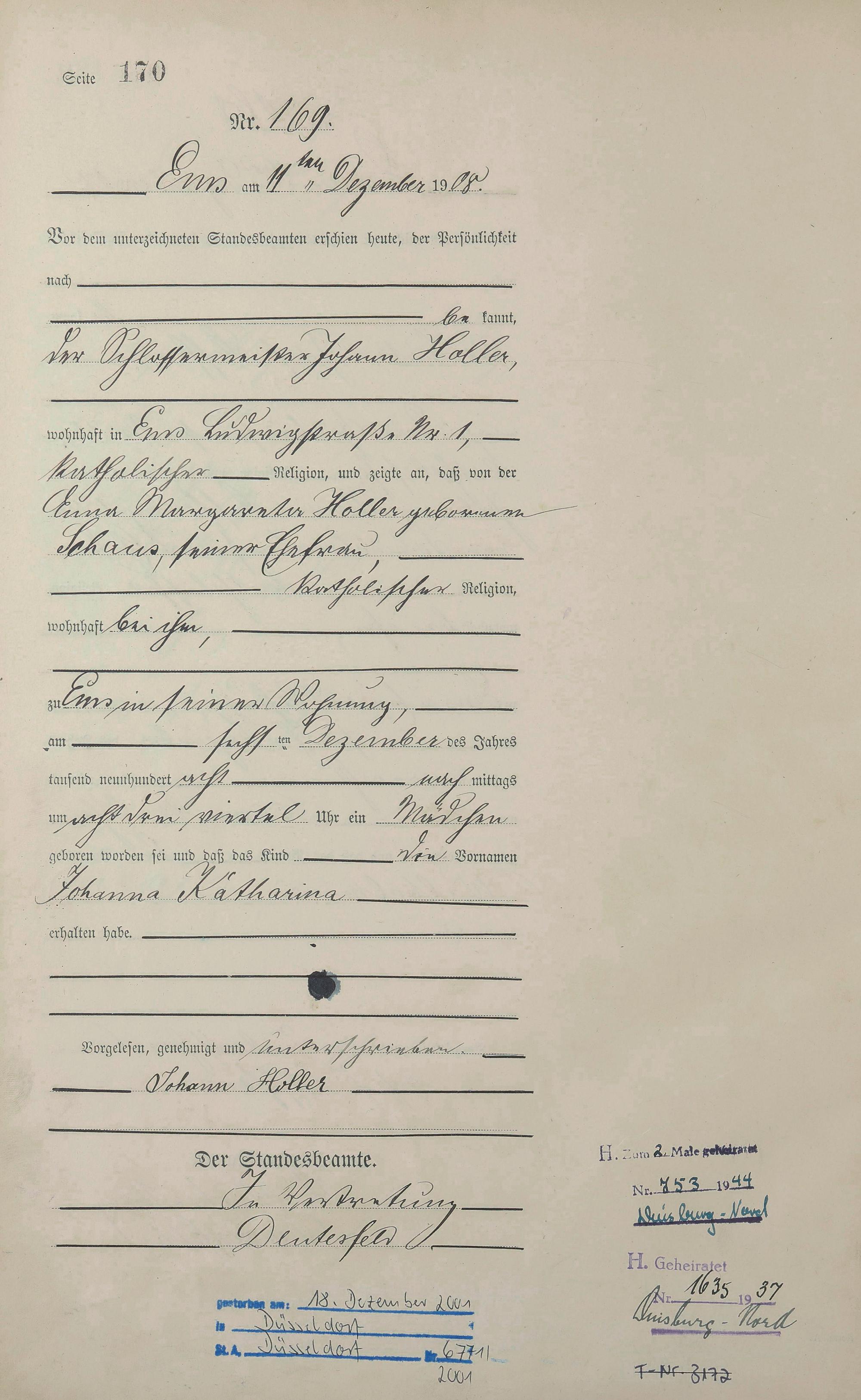 Geburtsregister 1908