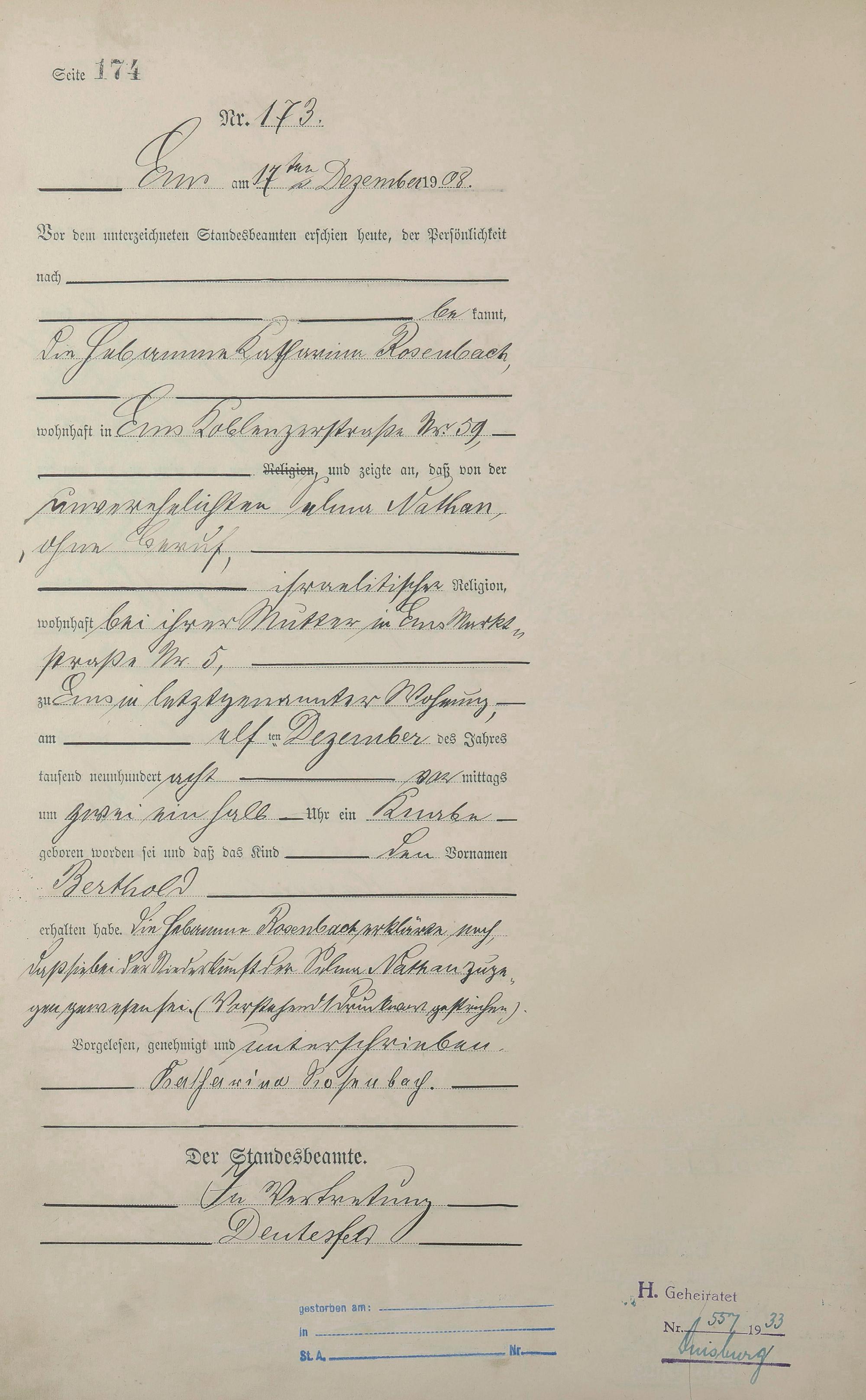 Geburtsregister 1908