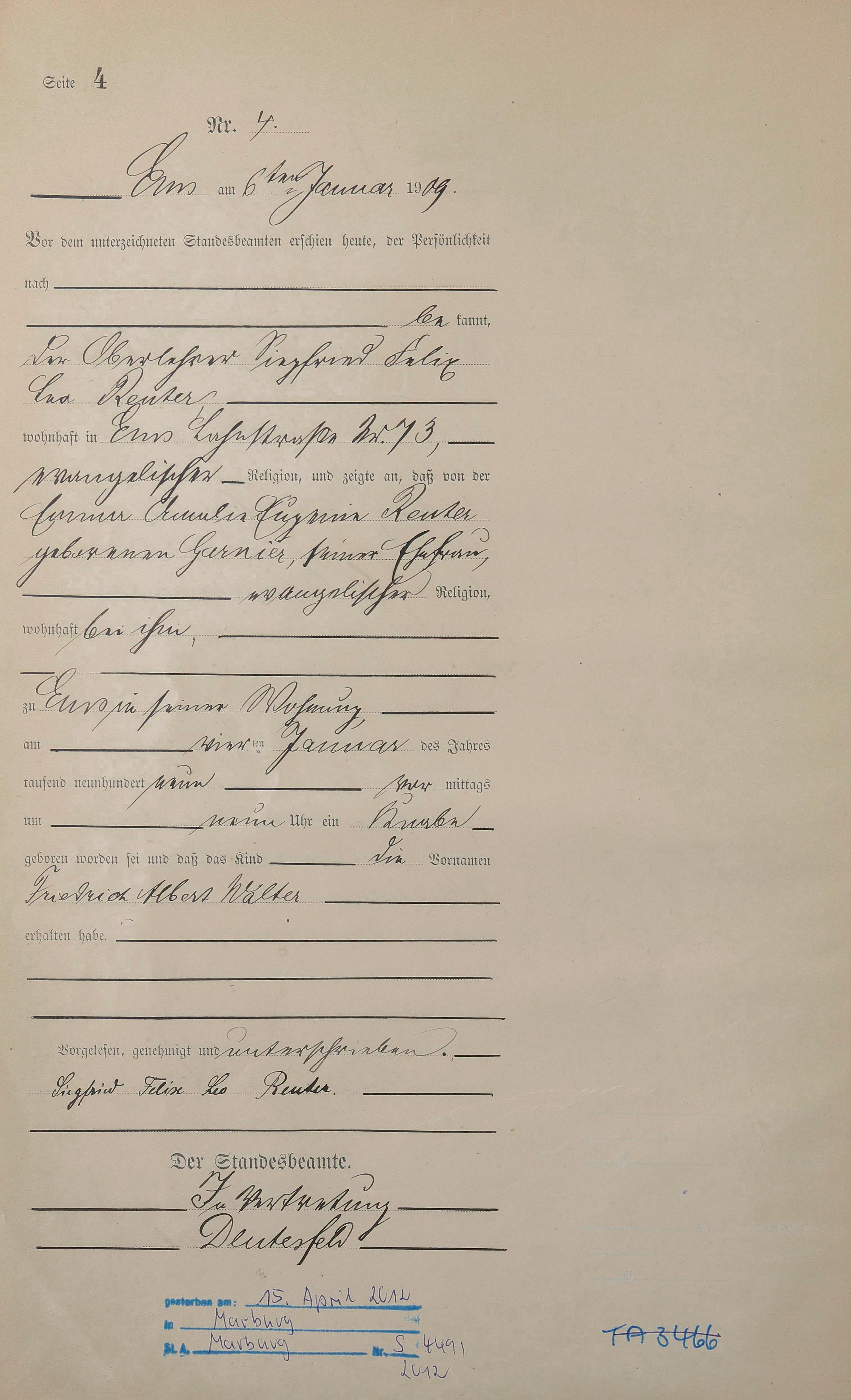 Geburtsregister 1909