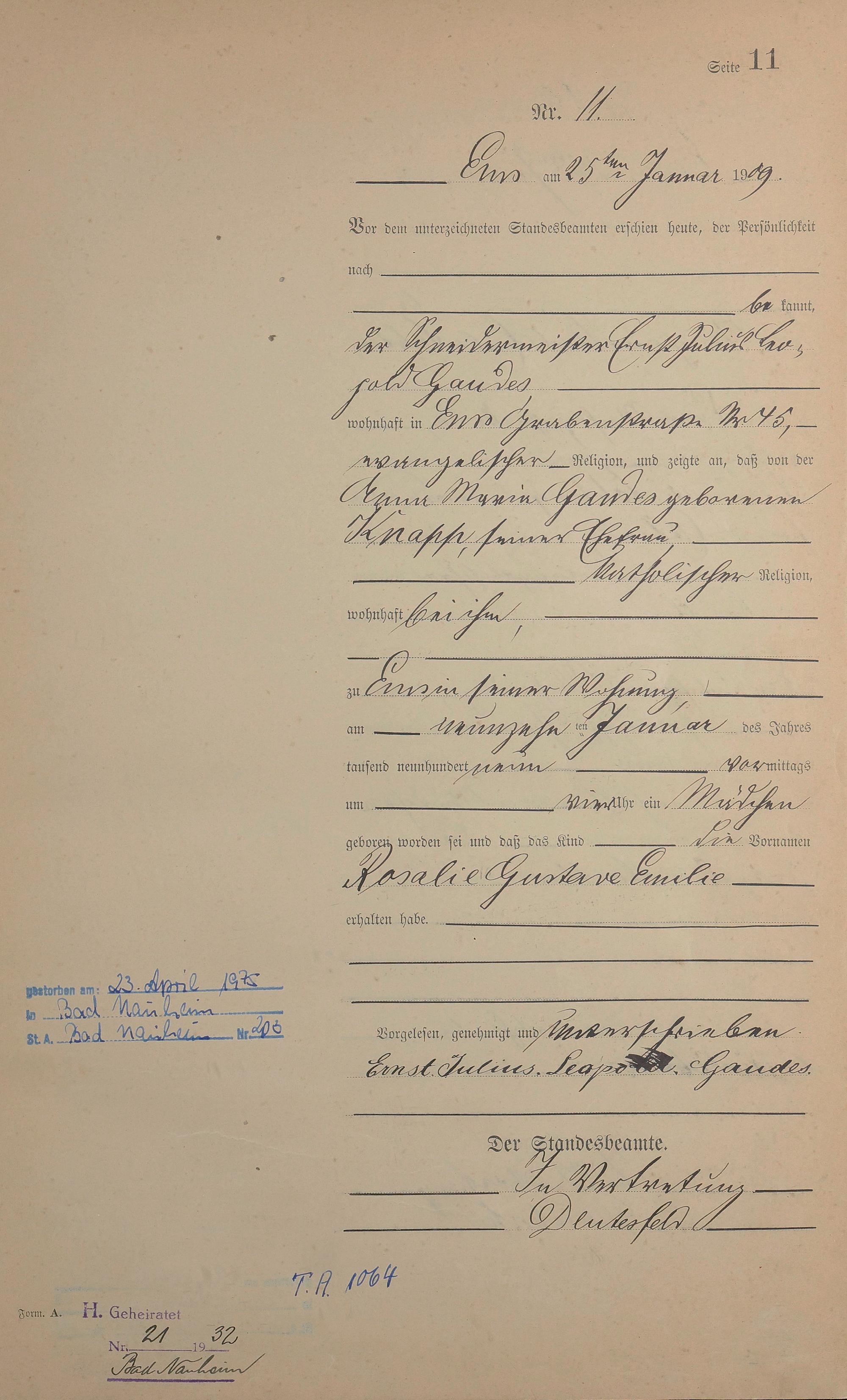 1285: Geburtsregister 1909