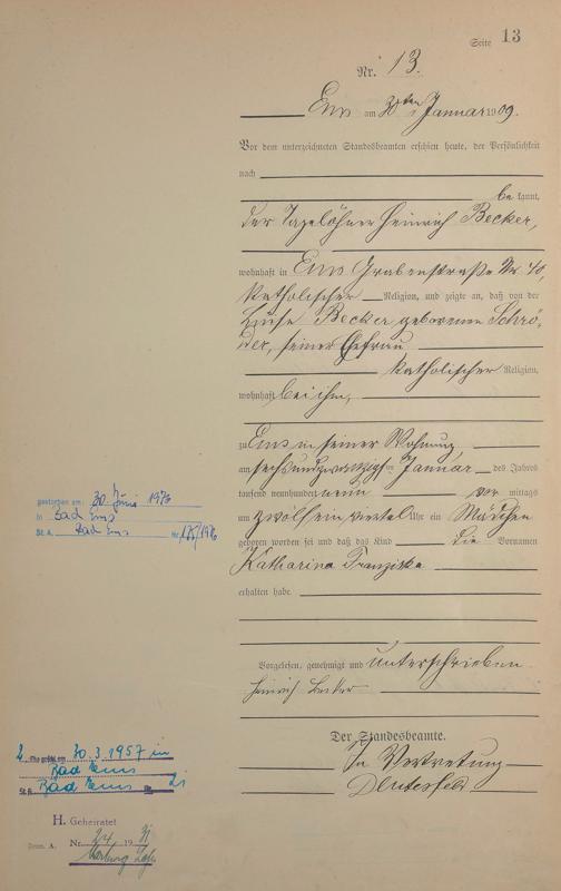 Geburtsregister 1909