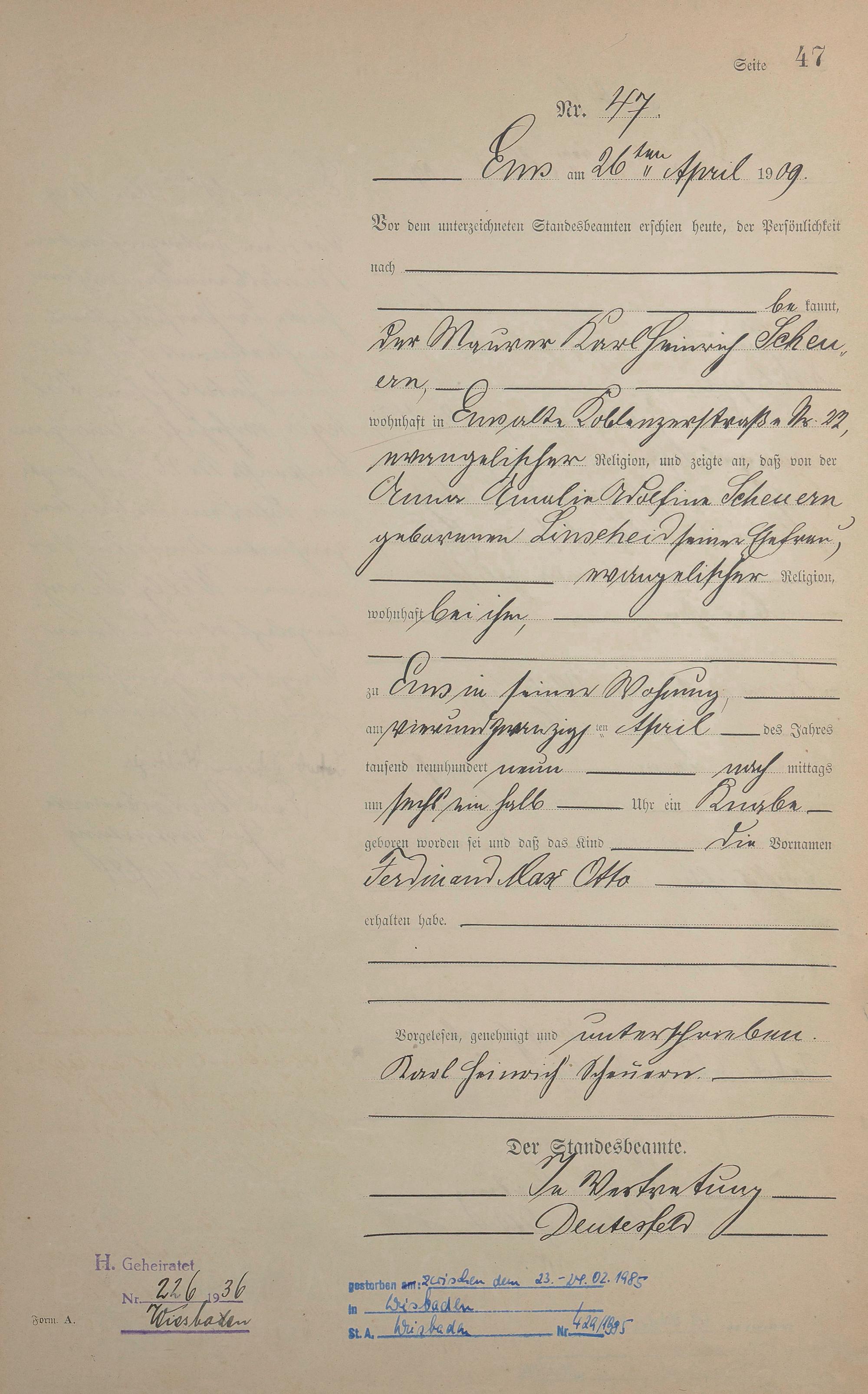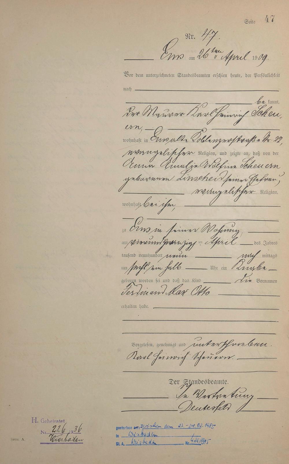 1285: Geburtsregister 1909