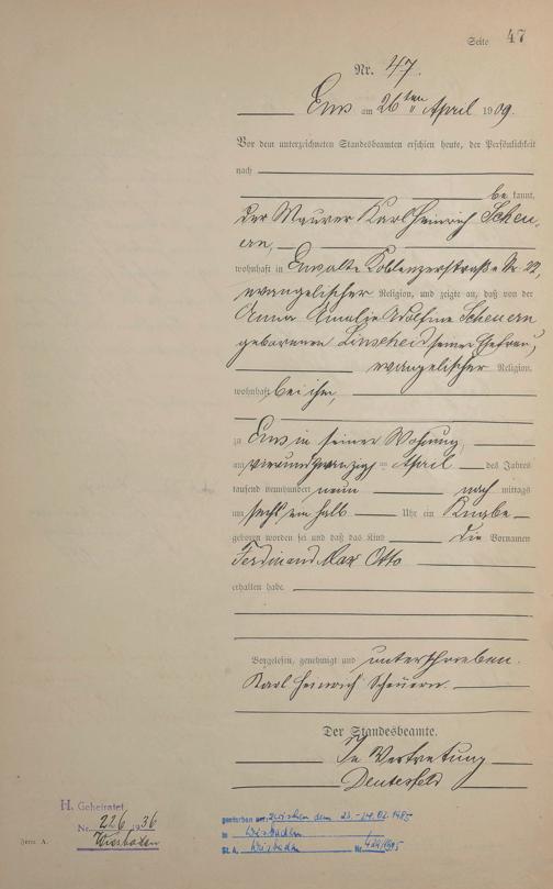 Geburtsregister 1909