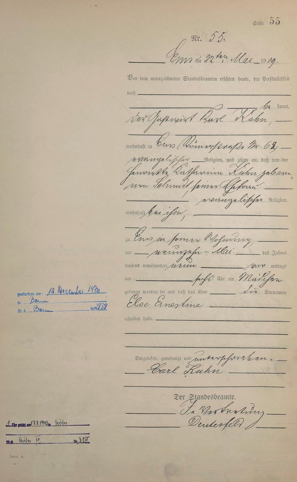 Geburtsregister 1909
