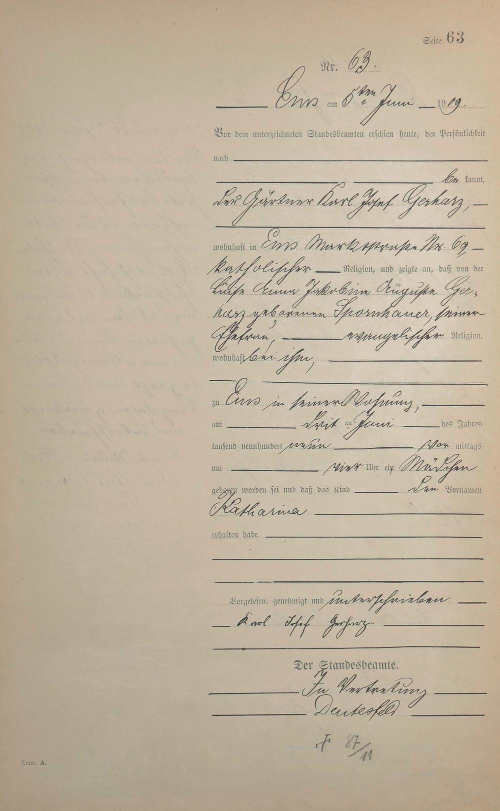 1285: Geburtsregister 1909