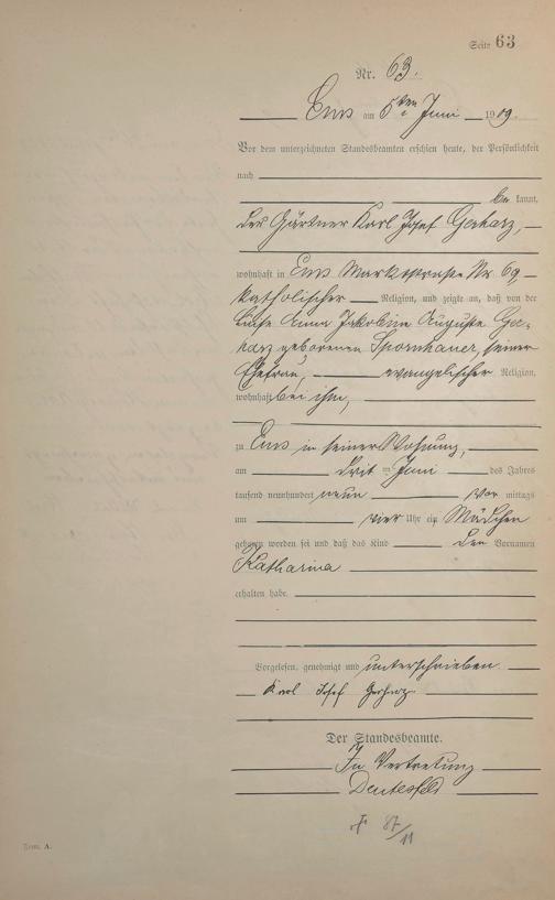 Geburtsregister 1909