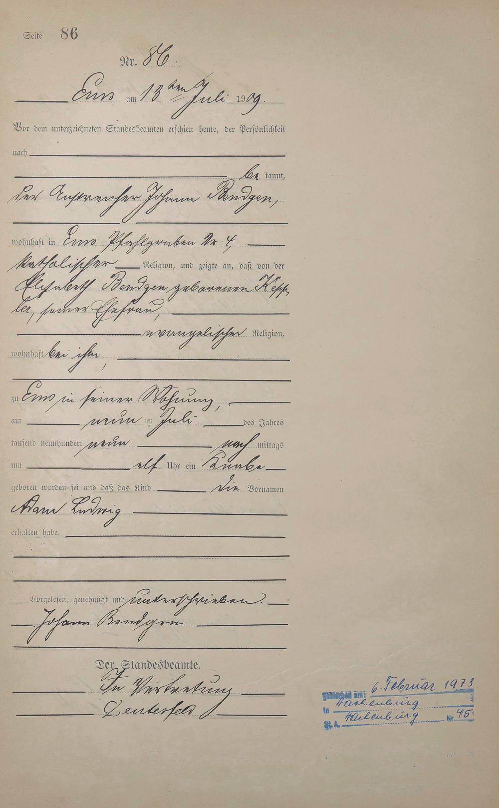 1285: Geburtsregister 1909