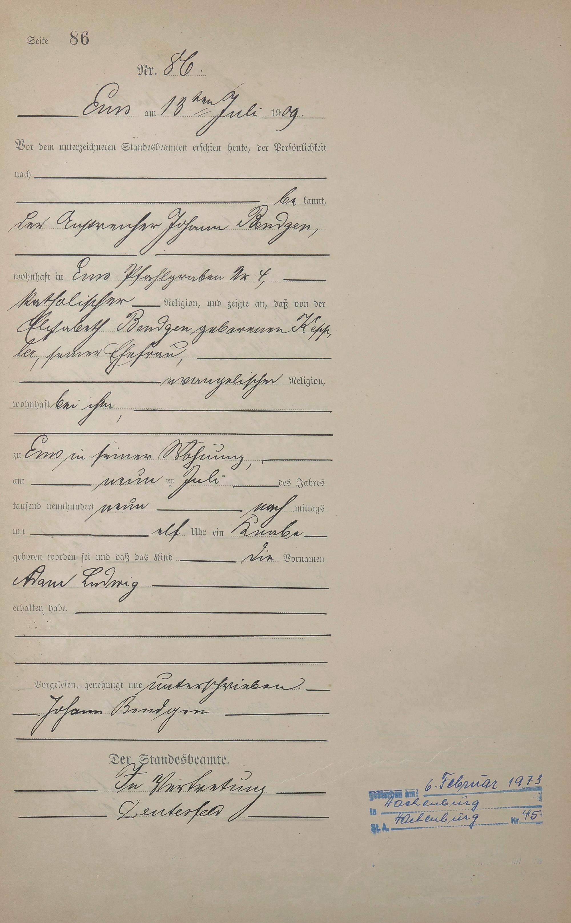 Geburtsregister 1909
